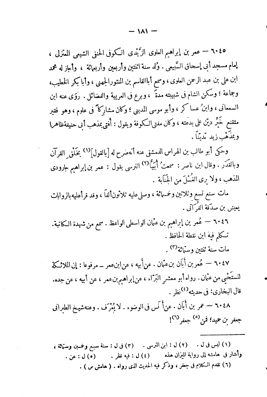 6045 - عمر بن إبراهيم العلوي الزيدى الكوفي الحنفي الشيعي المعتزلي، إمام مسجد أبي إسحاق السبيعى.
