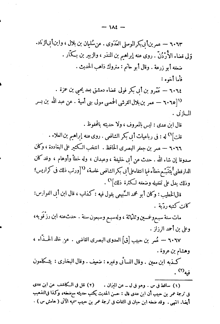 (2) نقل في الكاشف عن ابن عدي في ترجمة عمر بن حبيب أن ابن عدي قال: حسن الحديث يكتب حديثه مع ضعفه، وكذا في التذهيب أيضا.