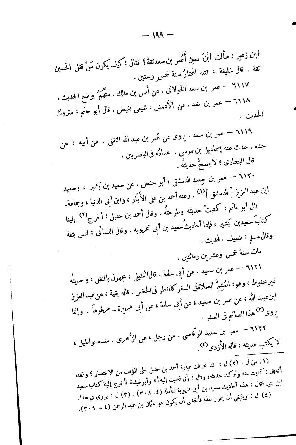 (2) ل: قد تحرفت عبارة أحمد بن حنبل على المؤلف من الاختصار، وذلك أنه قال: كتبت عنه وتركت حديثه، وقال: إنى ذهبت إليه أنا وأبو خيثمة فأخرج إلينا كتاب سعيد ابن بشير فقال: هذه أحاديث سعيد بن أبي عروبة فتأمله (4 - 308) .