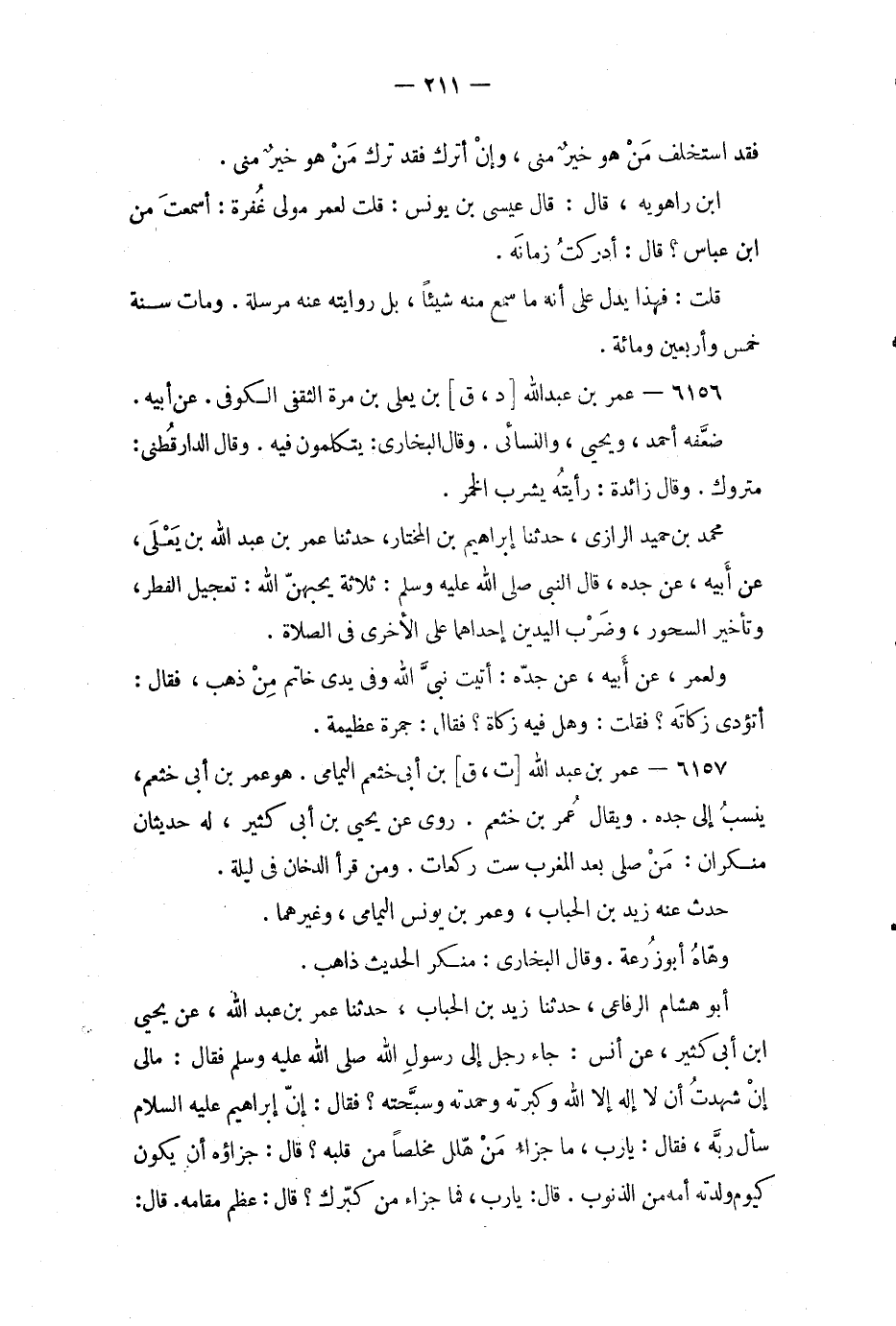 ولعمر، عن أبيه، عن جده: أتيت نبي الله وفي يدى خاتم من ذهب، فقال: أتؤدى زكاته؟ فقلت: وهل فيه زكاة؟ فقال: جمرة عظيمة.