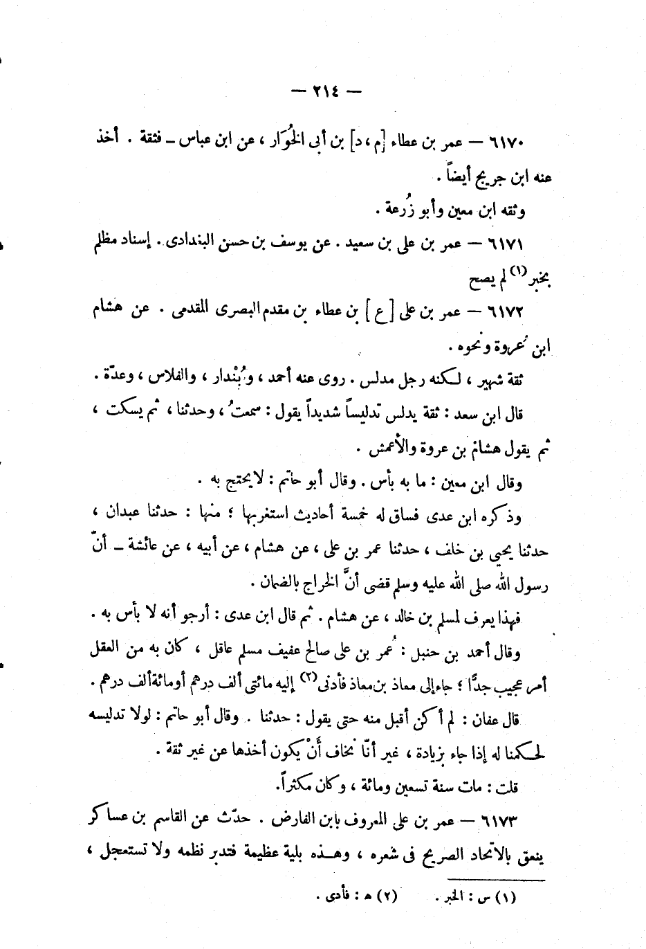 إسناد مظلم بخبر (1) لم يصح 6172 - عمر بن على [ع] بن عطاء بن مقدم البصري المقدمي.