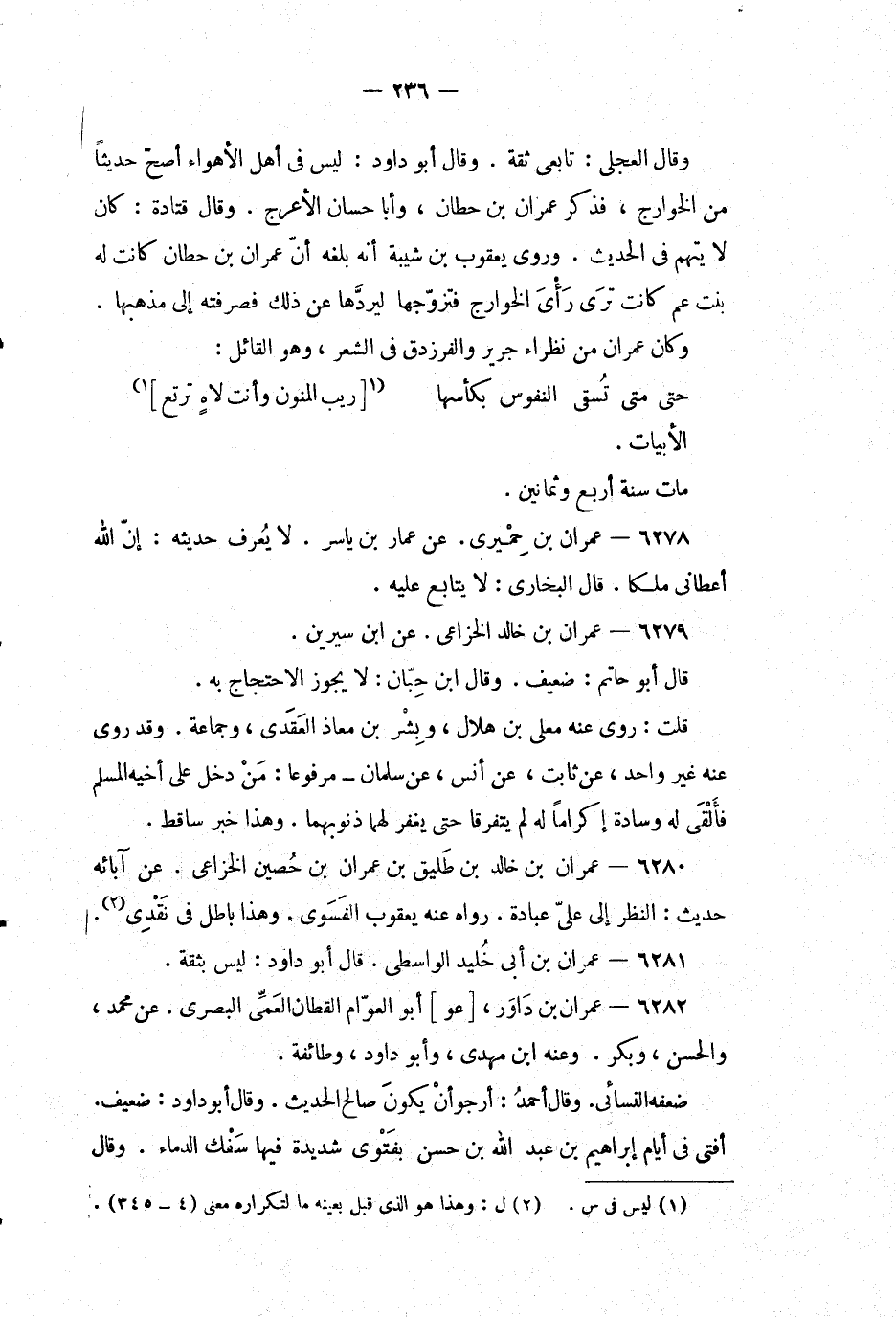 وكان عمران من نظراء جرير والفرزدق في الشعر، وهو القائل: حتى متى تسقى النفوس بكأسها * (1 [ريب المنون وأنت لاه ترتع] 1) الأبيات.