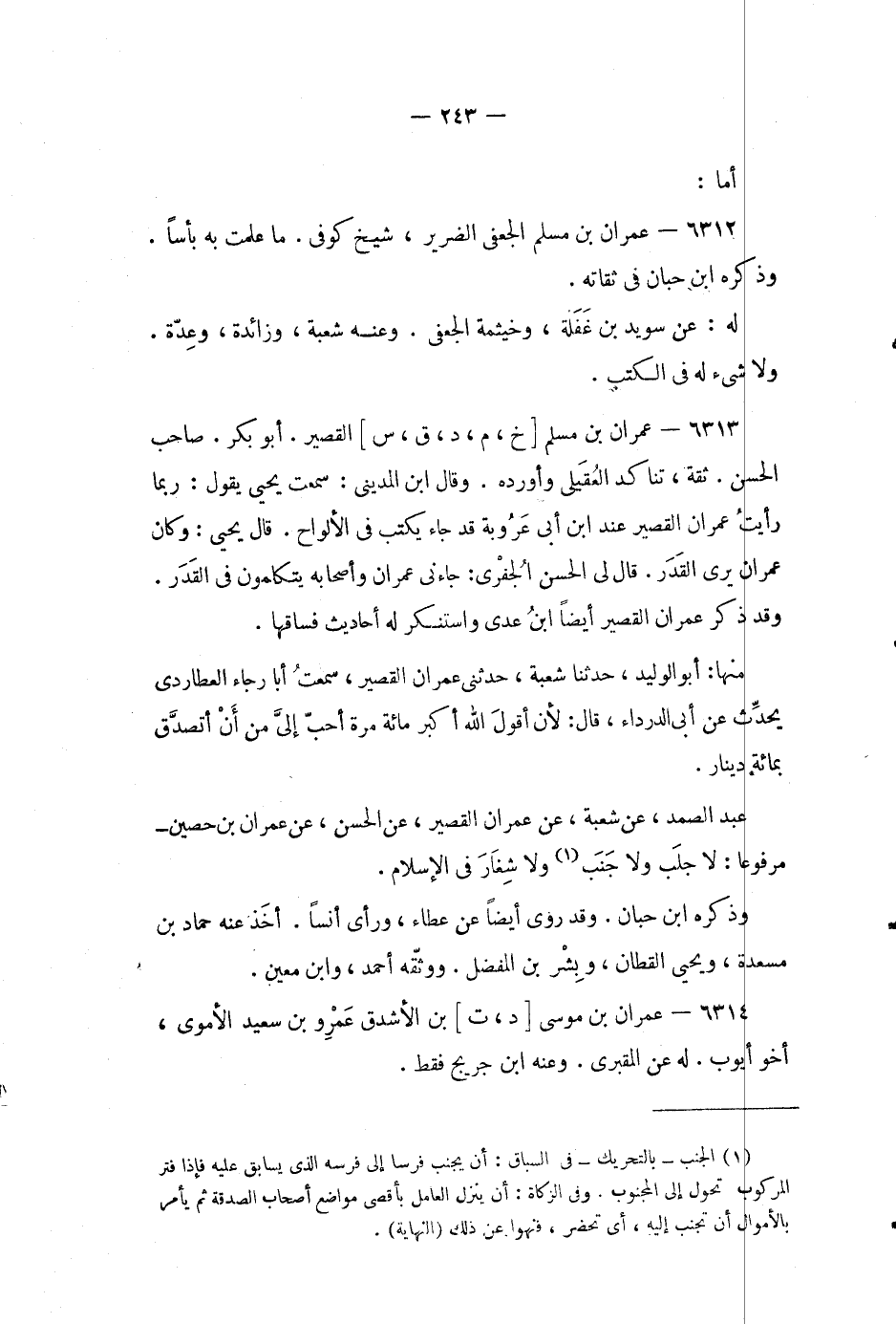 أما: 6312 - عمران بن مسلم الجعفي الضرير، شيخ كوفي.