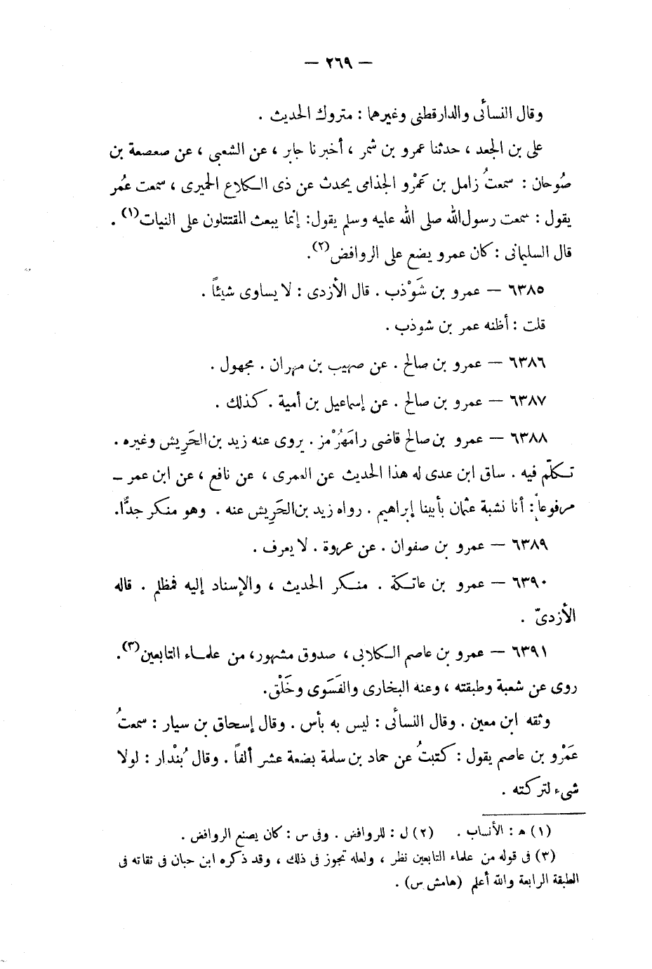 قال السليماني: كان عمرو يضع على الروافض (2) .