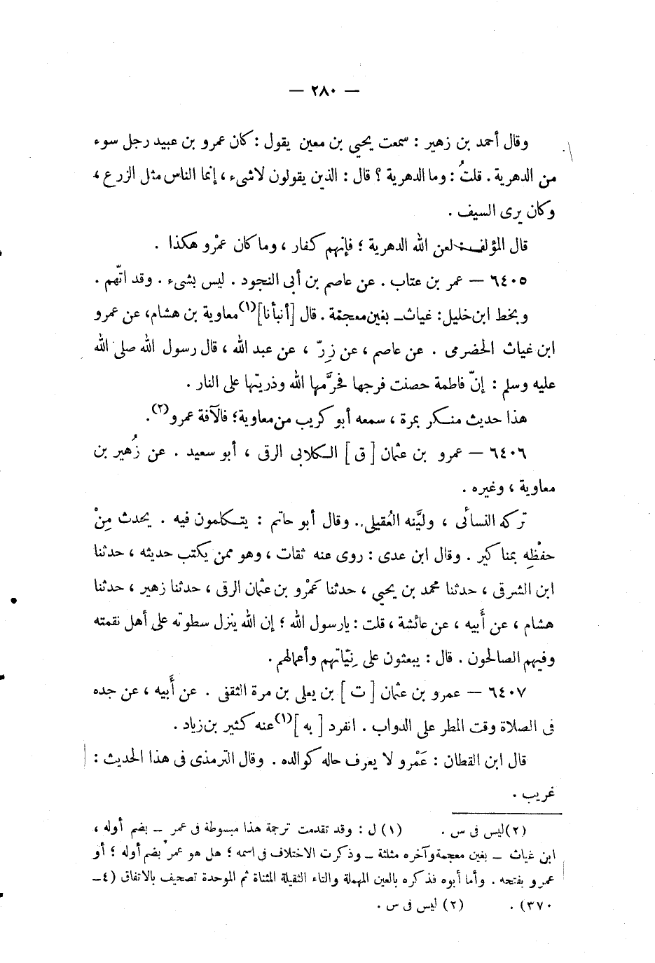 قال المؤلف: لعن الله الدهرية، فإنهم كفار، وما كان عمرو هكذا.