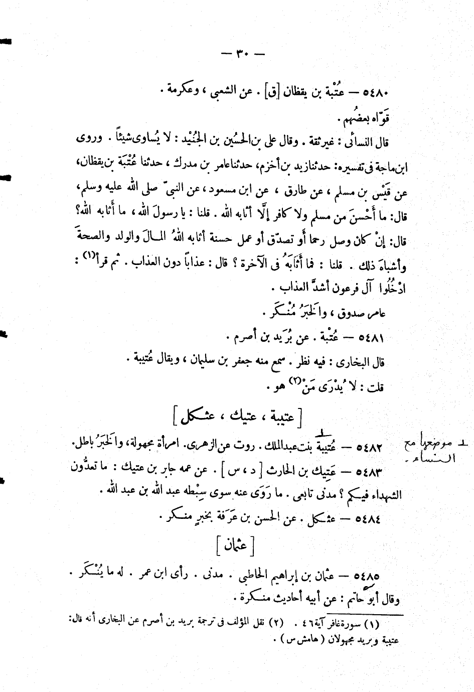 (2) نقل المؤلف في ترجمة بريد بن أصرم عن البخاري أنه قال: عتيبة وبريد مجهولان (هامش س) .