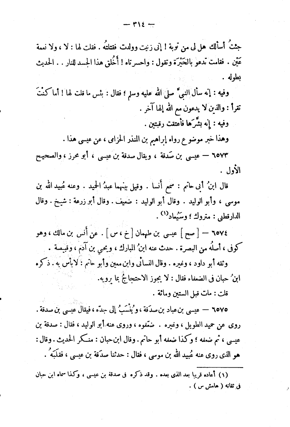 6575 - عيسى بن عباد بن صدقة، وينسب إلى جده، فيقال عيسى بن صدقة.