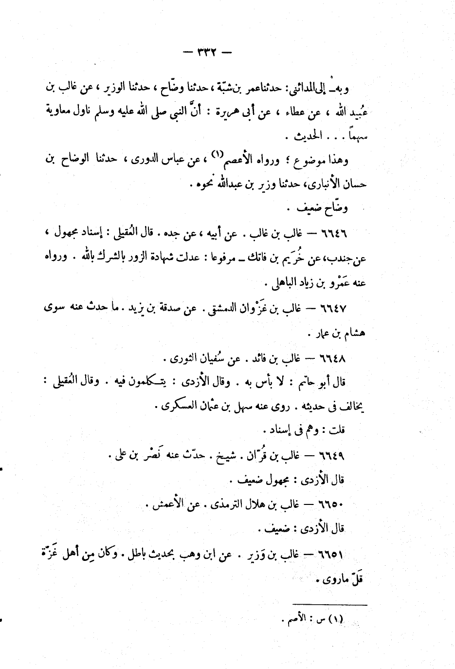 وبه - إلى المدائني: حدثنا عمر بن شبة، حدثنا وضاح، حدثنا الوزير، عن غالب بن عبيد الله، عن عطاء، عن أبي هريرة: أن النبي صلى الله عليه وسلم ناول معاوية سهما ... الحديث.