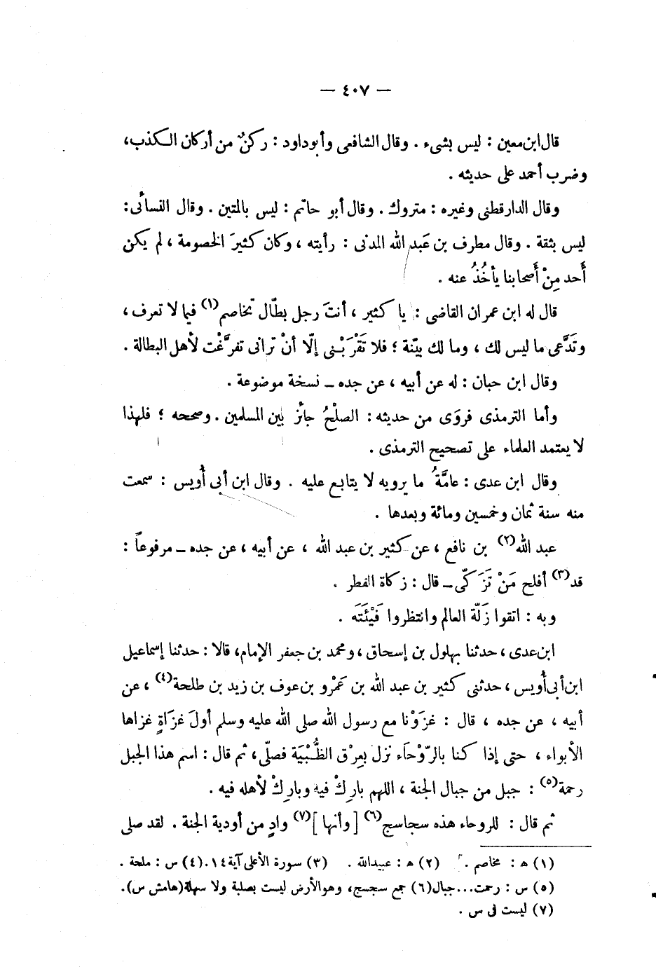ابن عدي، حدثنا بهلول بن إسحاق، ومحمد بن جعفر الامام، قالا: حدثنا إسماعيل ابن أبي أويس، حدثني كثير بن عبد الله بن عمرو بن عوف بن زيد بن طلحة (4) ، عن أبيه، عن جده، قال: غزونا مع رسول الله صلى الله عليه وسلم أول غزاة غزاها الابواء، حتى إذا كنا بالروحاء نزل بعرق الظبية فصلى، ثم قال: اسم هذا الجبل رحمة (5) : جبل من جبال الجنة، اللهم بارك فيه وبارك لاهله فيه.