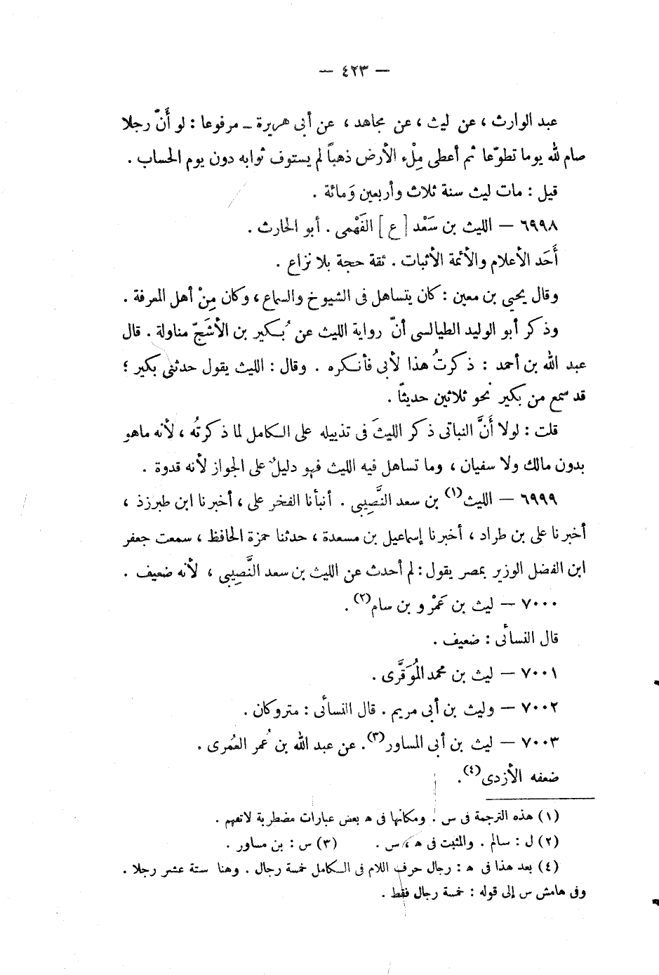 قلت: لولا أن النباتي ذكر الليث في تذييله على الكامل لما ذكرته، لانه ما هو بدون مالك ولا سفيان، وما تساهل فيه الليث فهو دليل على الجواز لانه قدوة.
