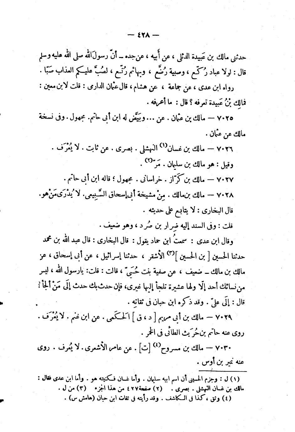 وأما ابن عدي فقال: مالك بن غسان النهشلي.