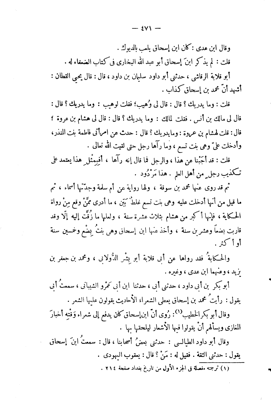 (1) ترجمته مفصلة في الجزء الأول من تاريخ بغداد صفحة 214.