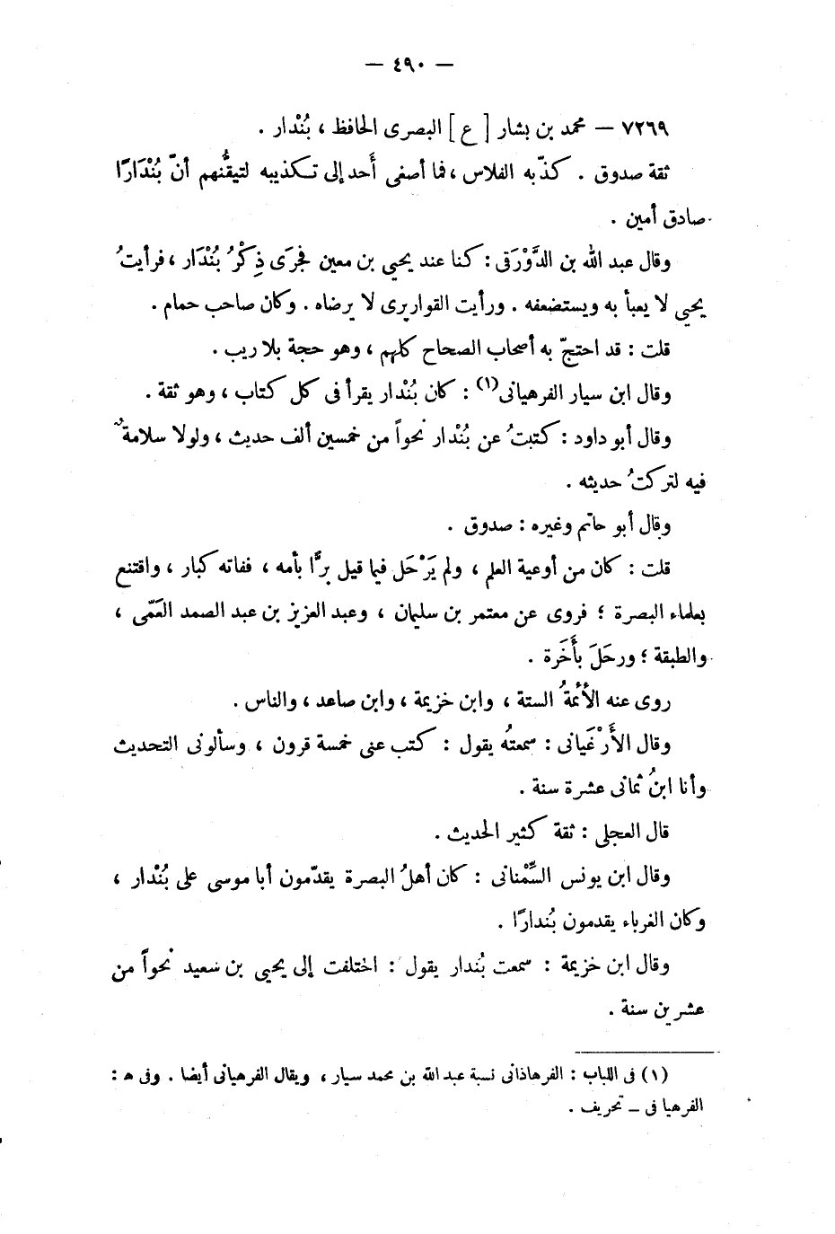 7269 - محمد بن بشار [ع] البصري الحافظ، بندار.