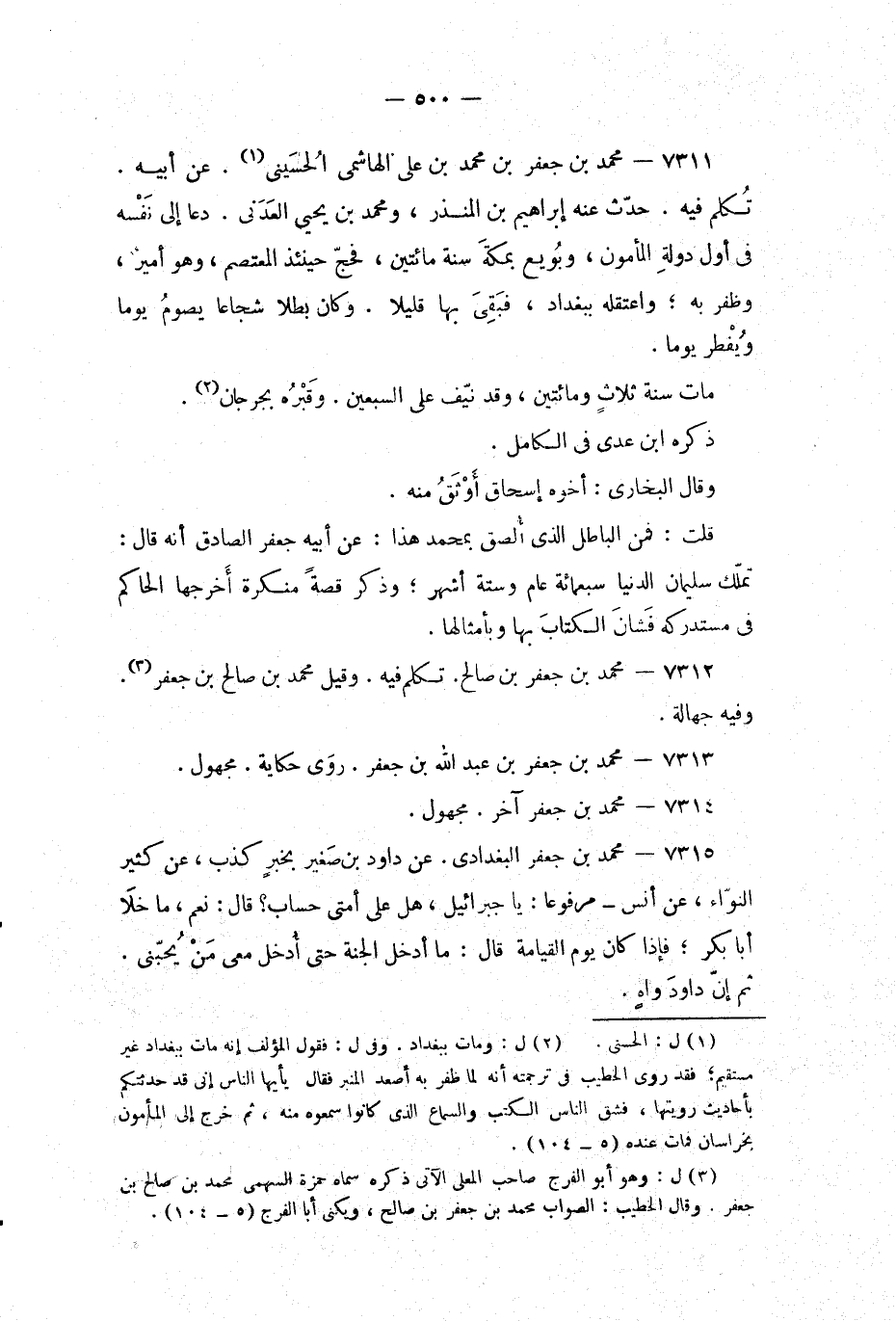 7311 - محمد بن جعفر بن محمد بن علي الهاشمي الحسينى (1) .
