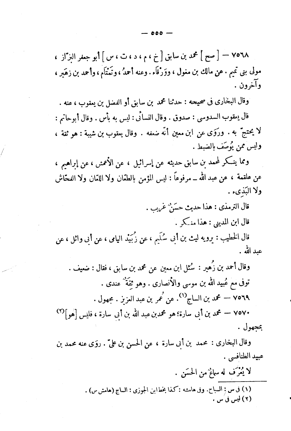 7568 - (صح) محمد بن سابق [خ، م، د، ت، س] أبو جعفر البزاز، مولى بنى تميم.