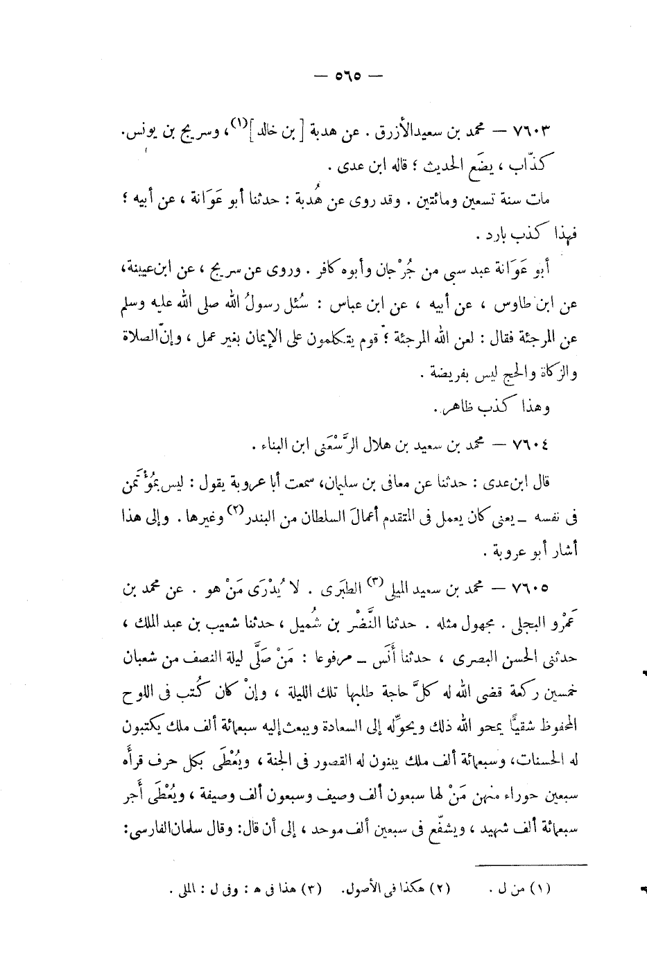 قال ابن عدي: حدثنا عن معافى بن سليمان، سمعت أبا عروبة يقول: ليس بمؤتمن في نفسه - يعنى كان يعمل في المتقدم أعمال السلطان من البندر (2) وغيرها.