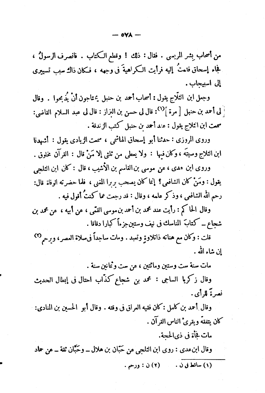 وقال ابن عدي: روى ابن الثلجى عن حبان بن هلال - وحبان ثقة - عن حماد