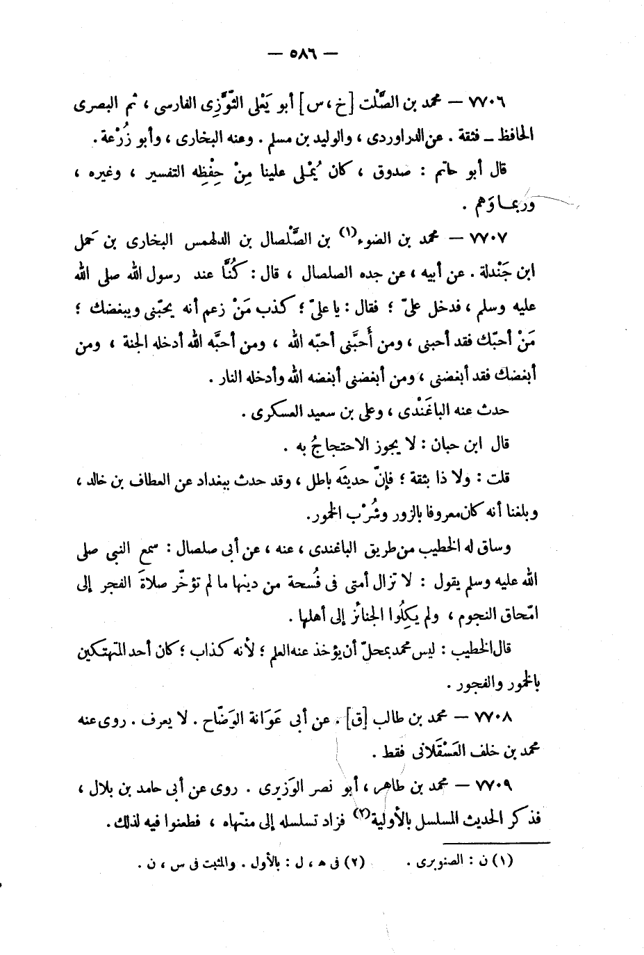 7707 - محمد بن الضوء (1) بن الصلصال بن الدلهمس البخاري بن حمل ابن جندلة.