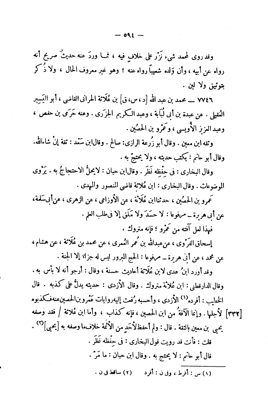7746 - محمد بن عبد الله [د، س، ق] بن علاثة الحراني القاضي، أبو اليسير العقيلي.