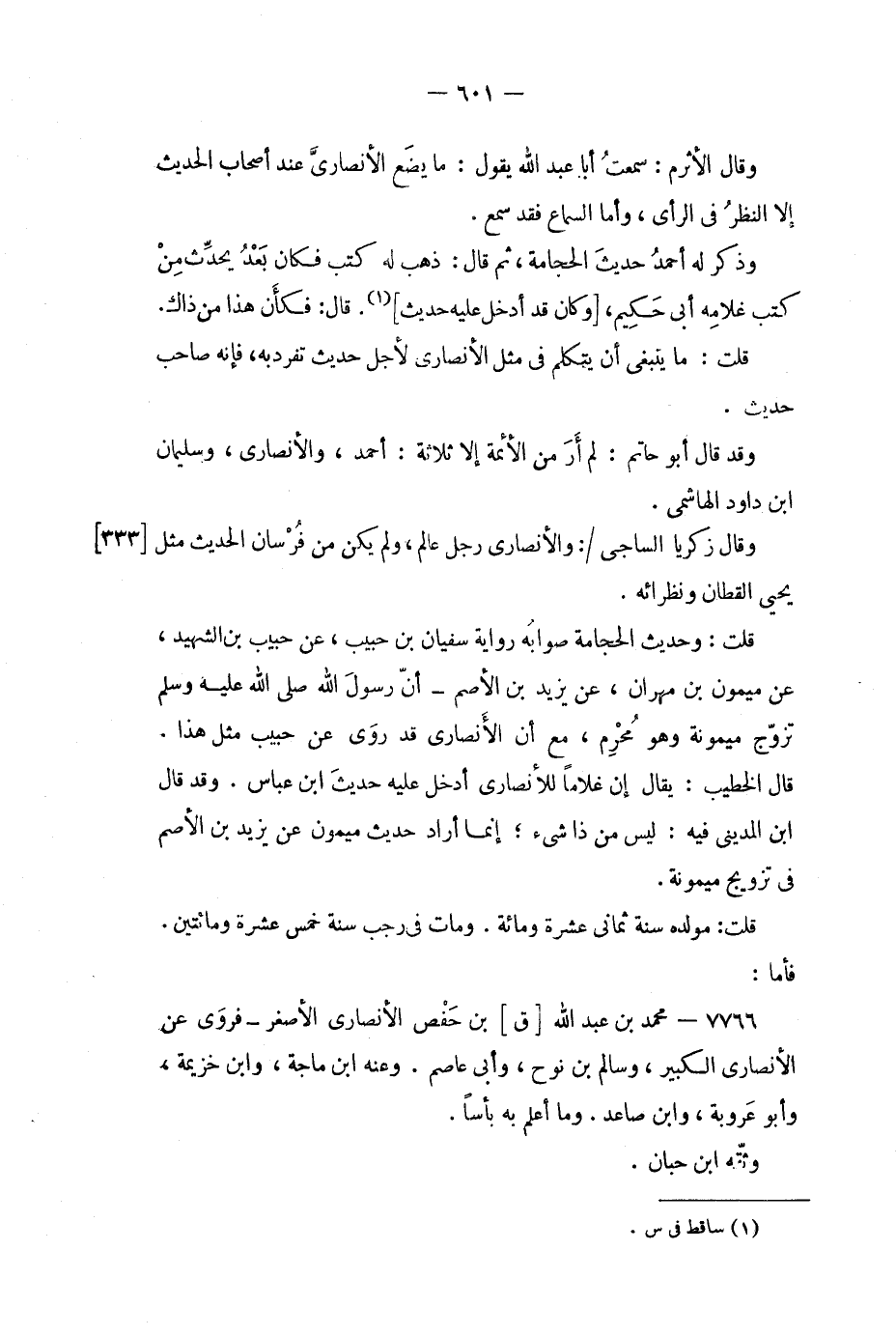 قلت: ما ينبغي أن يتكلم في مثل الأنصاري لاجل حديث تفرد به، فإنه صاحب حديث.