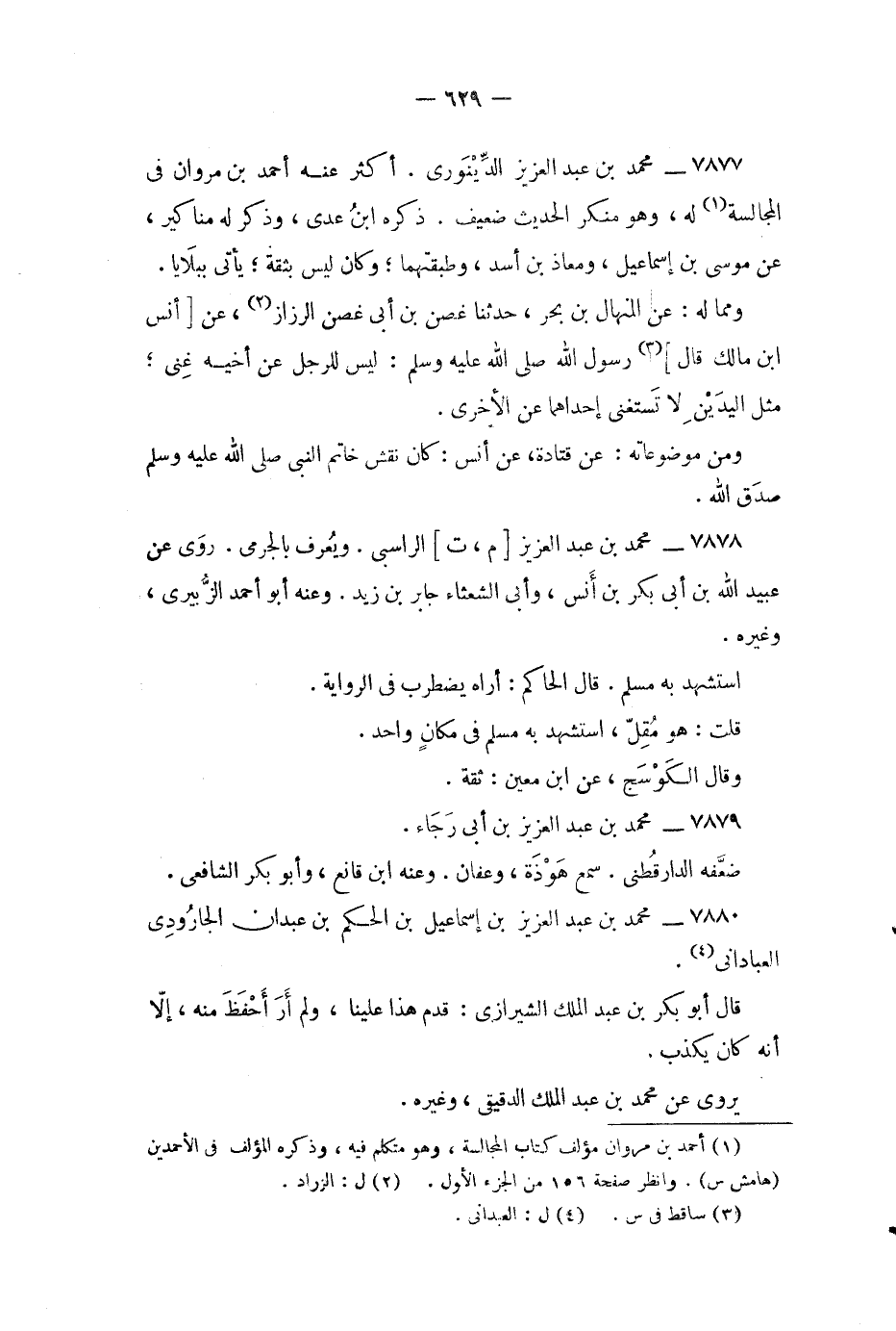 (1) أحمد بن مروان مؤلف كتاب المجالسة، وهو متكلم فيه، وذكره المؤلف في الاحمدين (هامش س) .