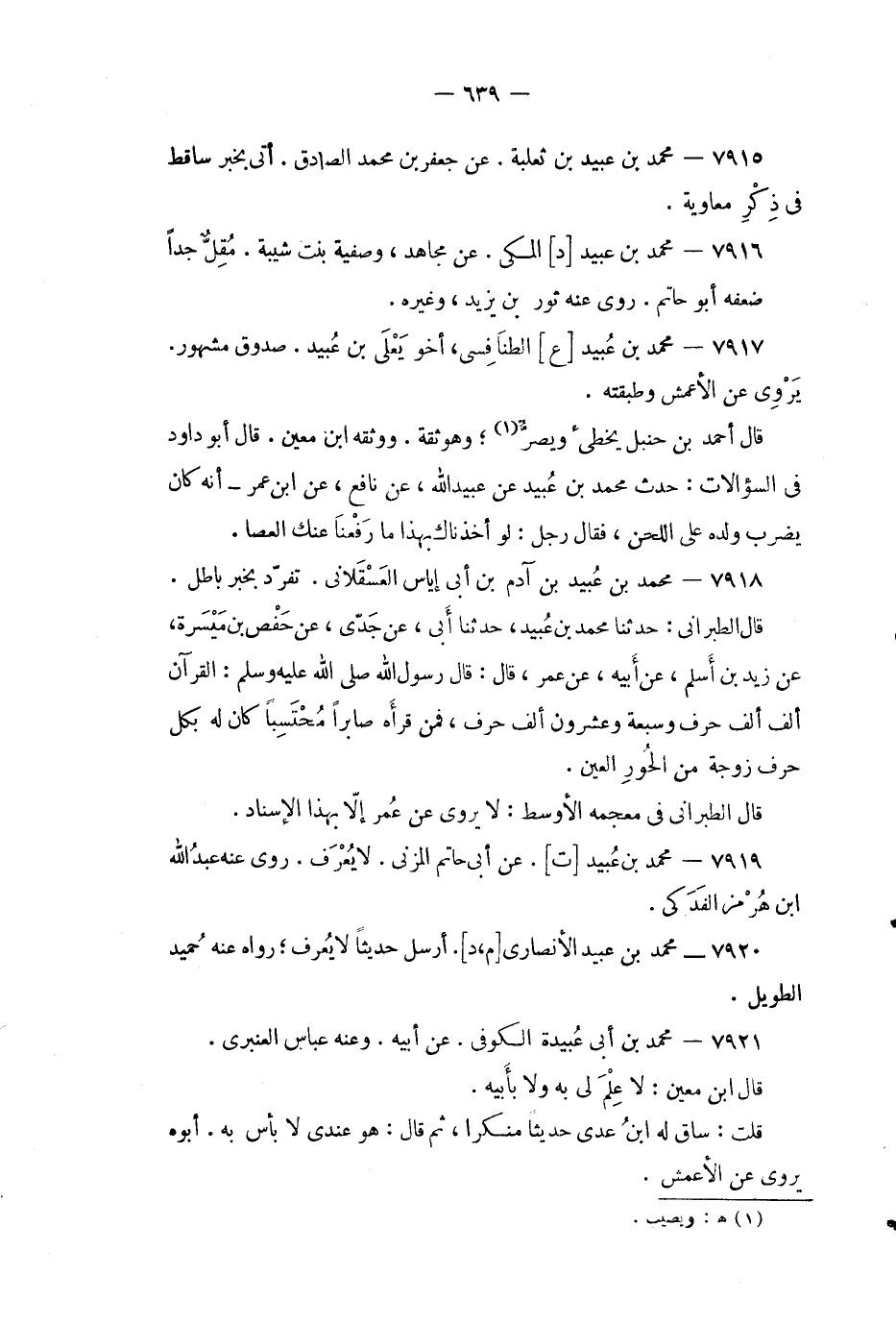 7917 - محمد بن عبيد [ع] الطنافسى، أخو يعلى بن عبيد.