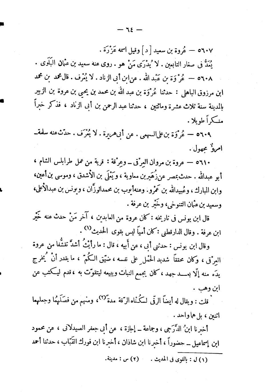 5610 - عروة بن مروان العرقي - وعرقة: قرية من عمل طرابلس الشام، أبو عبد الله.