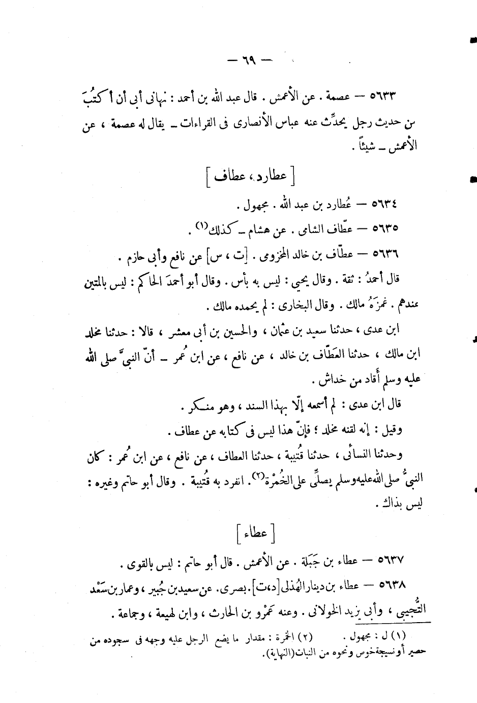 قال عبد الله بن أحمد: نهانى أبي أن أكتب من حديث رجل يحدث عنه عباس الانصاري في القراءات - يقال له عصمة، عن الاعمش - شيئا.