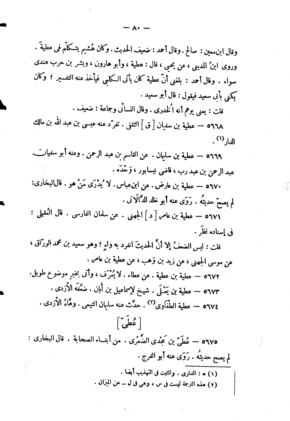 وروى ابن المديني، عن يحيى، قال: عطية، وأبو هارون، وبشر بن حرب عندي سواء.
