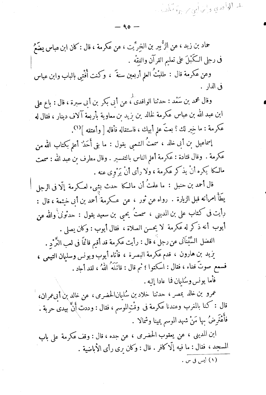ابن المديني، عن يعقوب الحضرمي، عن جده، قال: وقف عكرمة على باب المسجد، فقال: ما فيه إلا كافر.