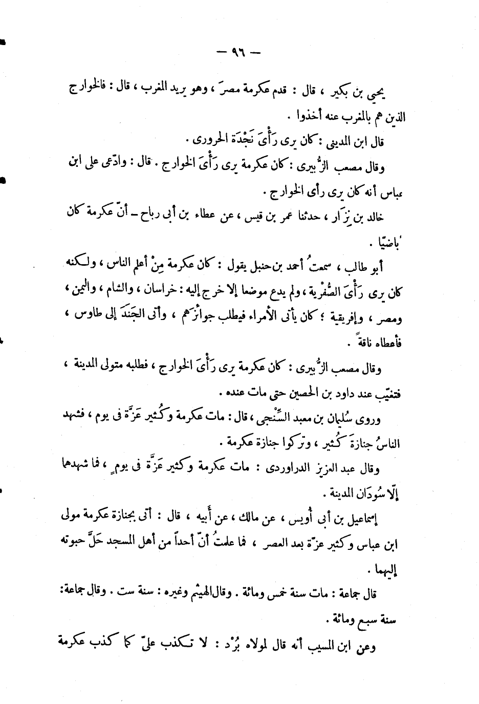 يحيى بن بكير، قال: قدم عكرمة مصر، وهو يريد المغرب، قال: فالخوارج الذين بالمغرب عنه أخذوا.