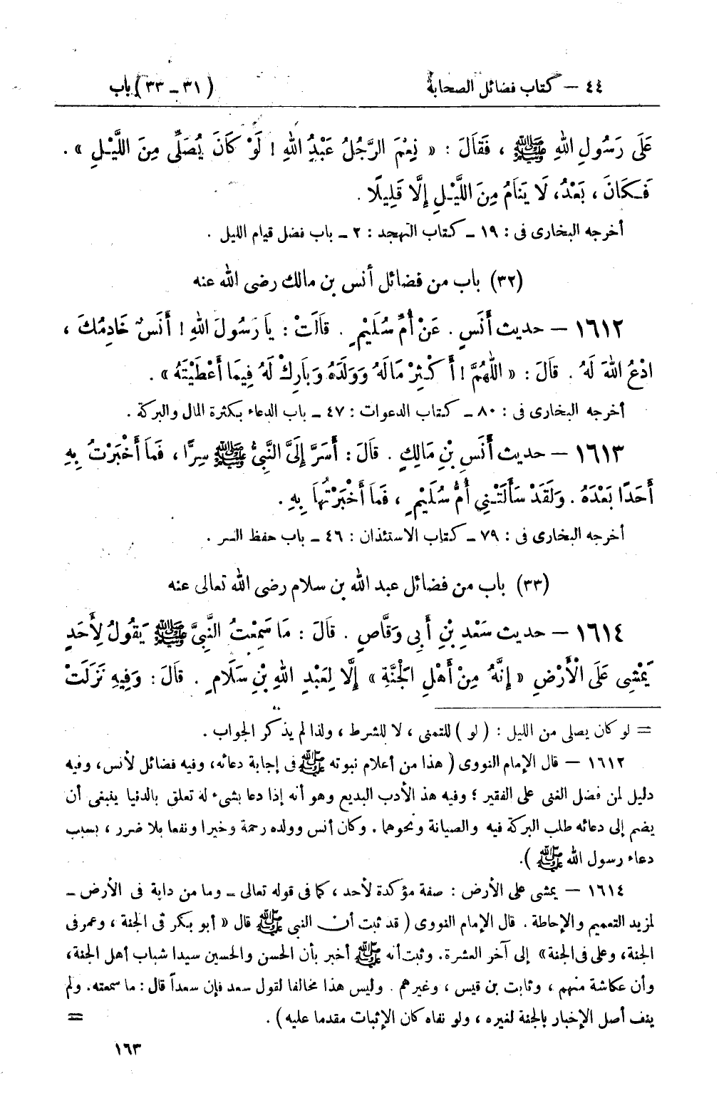 1614 - حديث سَعْدِ بْنِ أَبِي وَقَّاصٍ قَالَ: مَا سَمِعْتُ النَّبِيَّ صَلَّى اللَّهُ عَلَيْهِ وَسَلَّمَ يَقُولُ لأَحَدٍ يَمْشِي عَلَى الأَرْضِ إِنَّهُ مِنْ أَهْلِ الْجَنَّةِ إِلاَّ لِعَبْدِ اللهِ بْنِ سَلاَمٍ قَالَ: وَفِيهِ نَزَلَتْ -[164]- هذِهِ الآيَةُ (وَشَهِدَ شَاهِدٌ مِنْ بَنِي إِسْرَائِيلَ الآية)