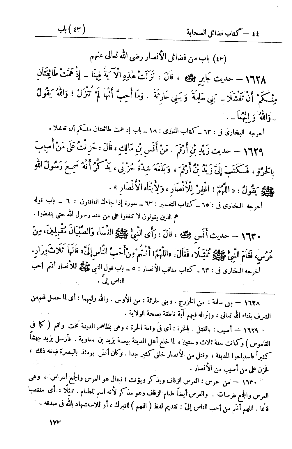 1628 - حديث جَابِرٍ رضي الله عنه، قَالَ: نَزَلَتْ هذِهِ الآيَةُ فِينَا (إِذْ هَمَّتْ طَائِفَتَانِ مِنْكُمْ أَنْ تَفْشَلاَ) بَنِي سَلِمَةَ وَبَنِي حَارِثَةَ وَمَا أُحِبُّ أَنَّهَا لَمْ تُنْزَلْ؛ وَاللهُ يَقُولُ (وَاللهُ وَلِيُّهُمَا)