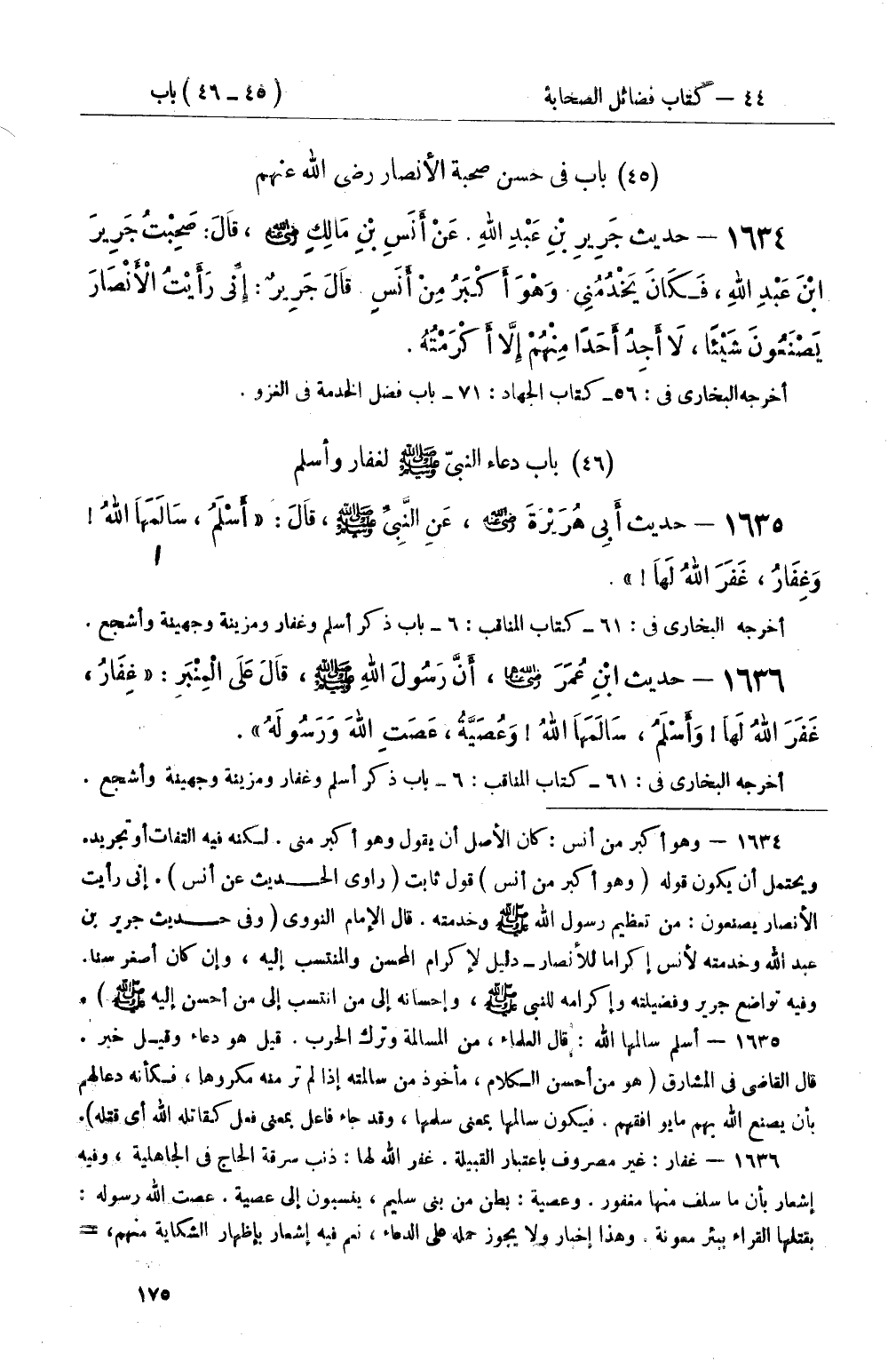 1634 - حديث جَرِيرِ بْنِ عَبْدِ اللهِ عَنْ أَنَسِ بْنِ مَالِكٍ رضي الله عنه، قَالَ: صَحِبْتُ جَرِيرَ بْنَ عَبْدِ اللهِ، فَكَانَ يَخْدُمُنِي وَهُوَ أَكْبَرُ مِنْ أَنَسٍ قَالَ جَرَيرٌ: إِنِّي رَأَيْتُ الأَنْصَارَ يَصْنَعُونَ شَيئًا، لاَ أَجِدُ أَحَدًا مِنْهُمْ إِلاَّ أَكْرَمْتُهُ