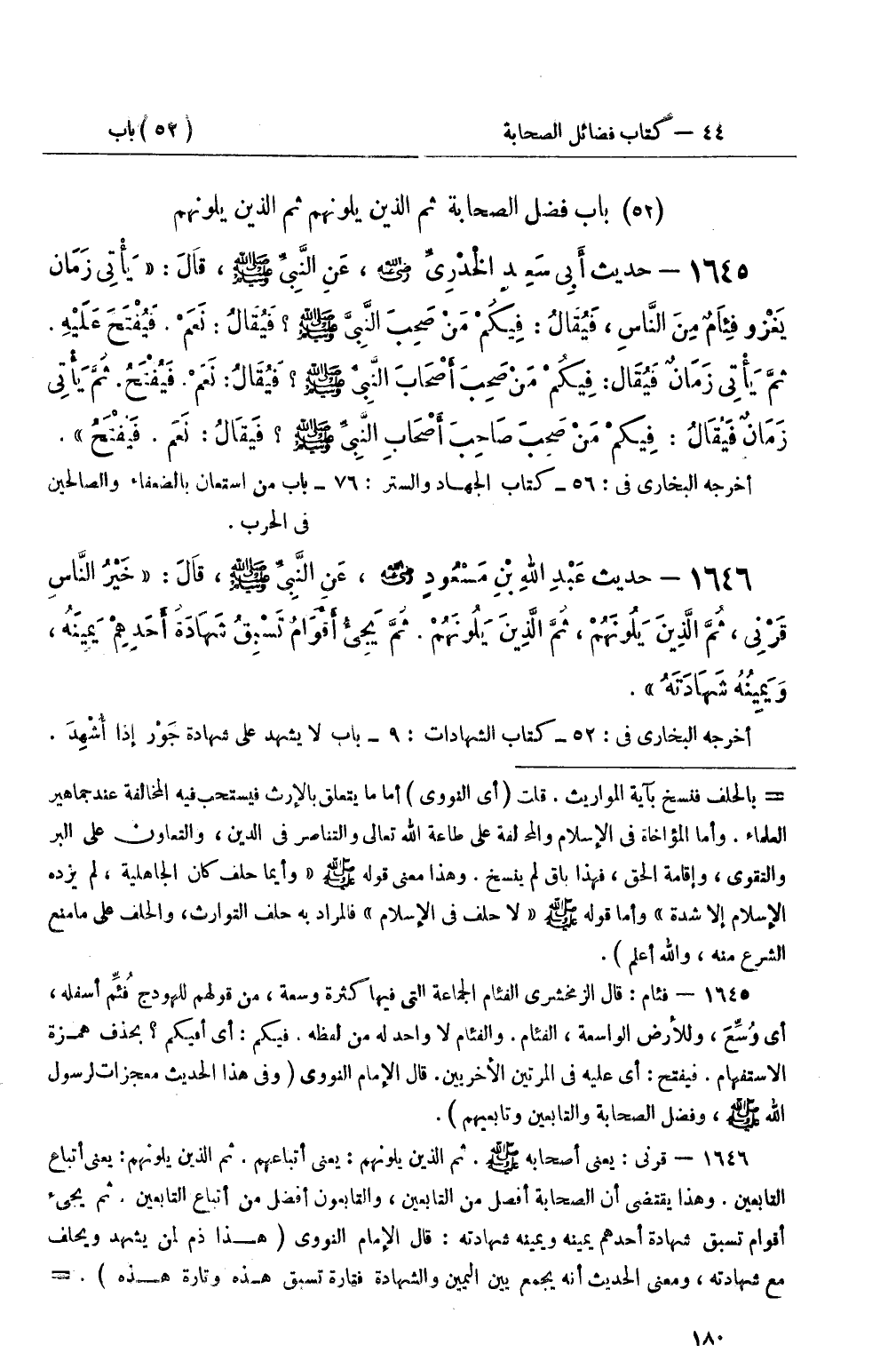 1645 - حديث أَبِي سَعِيدٍ الْخدْرِيِّ رضي الله عنه، عَنِ النَّبِيِّ صَلَّى اللَّهُ عَلَيْهِ وَسَلَّمَ، قَالَ: يَأْتِي زَمَانَ يَغْزو فِئَامٌ مِنَ النَّاسِ، فَيُقَالُ: فِيكُمْ مَنْ صَحِبَ النَّبِيَّ صَلَّى اللَّهُ عَلَيْهِ وَسَلَّمَ فَيُقَالُ: نَعَمْ فَيُفْتَحَ عَلَيْهِ ثُمَّ يَأْتِي زَمَانٌ فَيُقَال: فِيكُمْ مَنْ صَحِبَ أَصْحَابَ النَّبِيِّ صَلَّى اللَّهُ عَلَيْهِ وَسَلَّمَ فَيُقَالُ: نَعَمْ فَيُفْتَحُ ثُمَّ يَأْتِي زَمَانٌ فَيُقَالُ: فِيكُمْ مَنْ صَحِبَ صَاحِبَ أَصْحَابِ النَّبِيِّ صَلَّى اللَّهُ عَلَيْهِ وَسَلَّمَ فَيقَالُ: نَعَم فَيُفْتَحُ