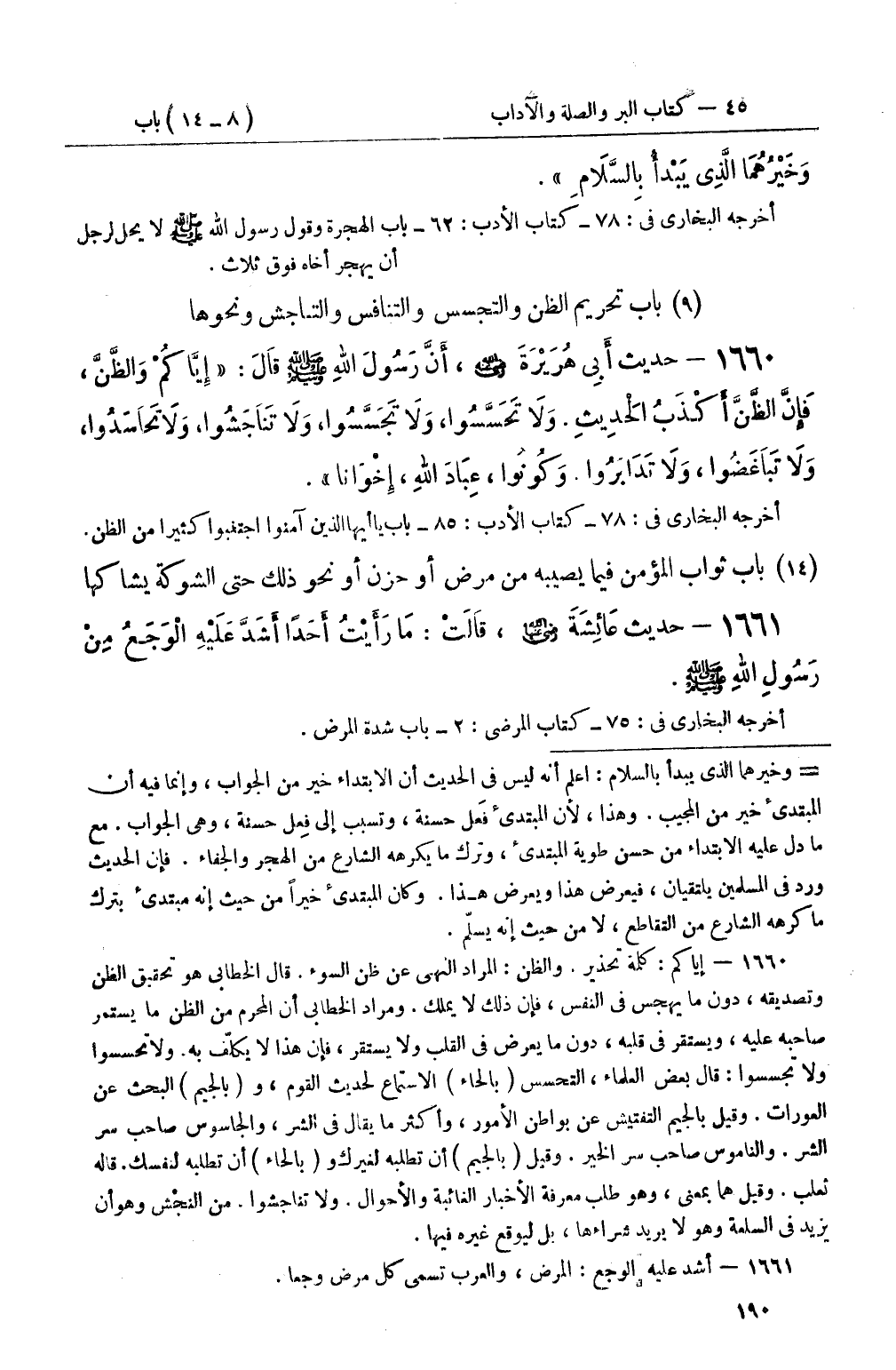 1660 - حَدِيثُ أَبِي هُرَيْرَةَ رضي الله عنه، أَن رَسُولَ الله صَلَّى اللَّهُ عَلَيْهِ وَسَلَّمَ قَالَ: «إِيَّاكُمْ وَالظَّنَّ، فَإِنَّ الظَّنَّ أَكْذَبُ الْحَدِيثِ. وَلاَ تَحَسَّسُوا، وَلاَ تَجَسَّسُوا، وَلاَ تَنَاجَشُوا، وَلاَ تَحَاسَدُوا، وَلاَ تَبَاغُضُوا، وَلاَ تَدَابَرُوا. وَكُونوا عِبَادَ الله إِخْوَانًا» .