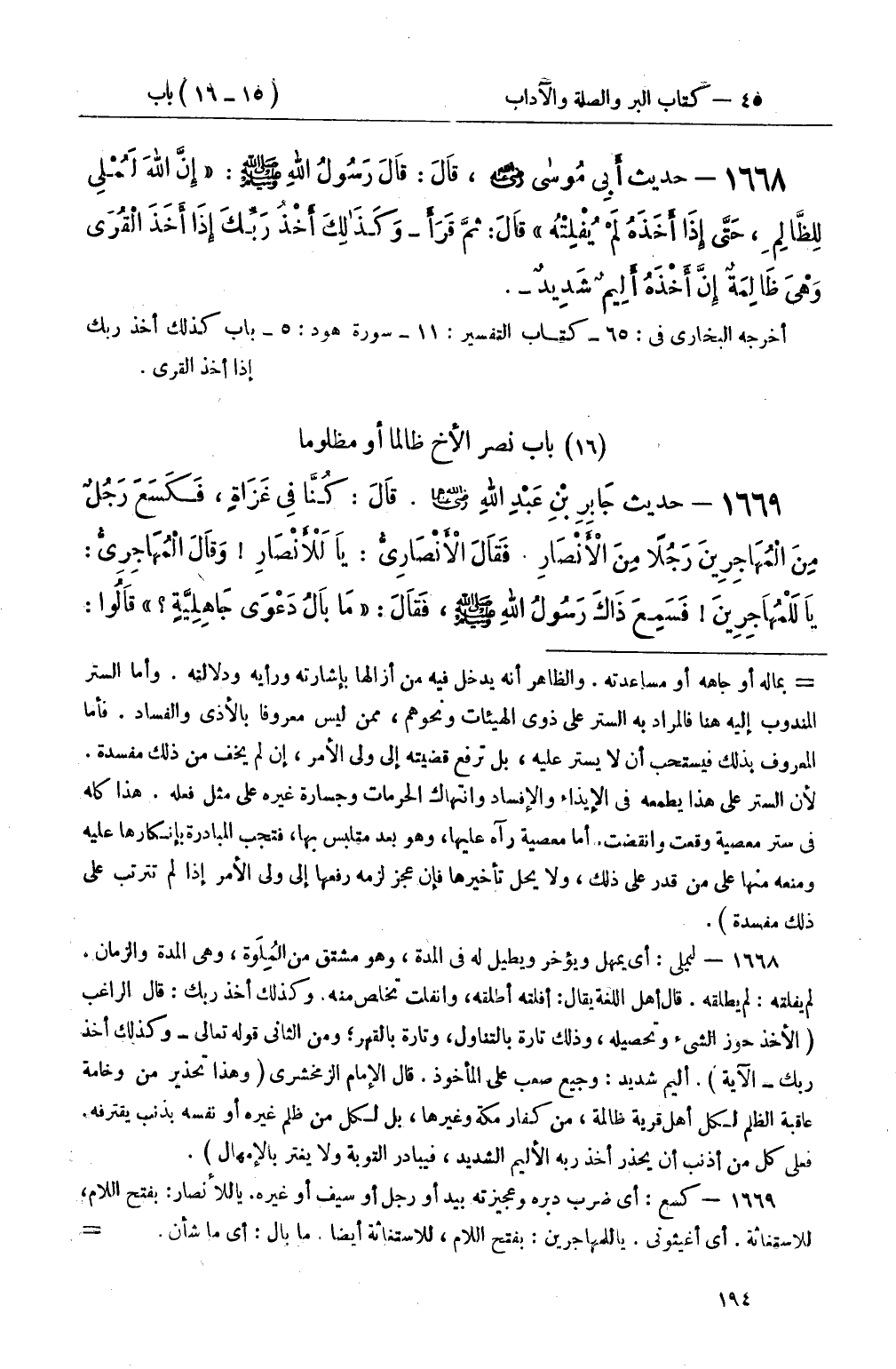 1668 - حدِيثُ أَبِي مُوسى رضي الله عنه، قَالَ: قَالَ رَسُولُ الله صَلَّى اللَّهُ عَلَيْهِ وَسَلَّمَ: «إِنَّ الله لَيُمْلِي للظَّالِمِ، حَتَّى إِذَا أَخَطَهُ لَمْ يُفْلِتْهُ» قَالَ: قَرَأَ {وَكَطالِكَ أَخْذُ رَبِّكَ إِذَا أَخَذَ القُرَى وَهِيَ ظَالِمَةٌ إِنَّ أَخْذَهُ أَلِيمٌ شَدِيدٌ} .