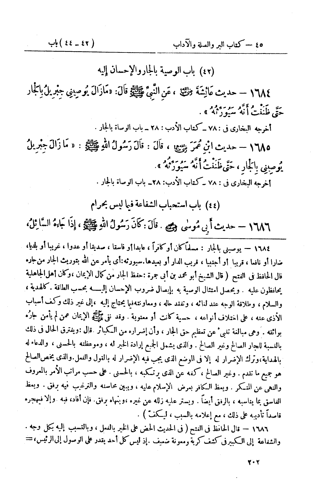 1685 - حَدِيثُ ابْنِ عُمَرَ رضي الله عنهما، قَالَ: قَالَ رَسُولُ الله صَلَّى اللَّهُ عَلَيْهِ وَسَلَّمَ: «مَا زَالَ جِبْرِيلُ يُوصِينِي بِالجَارِ، حَتَّى ظَنَنْتُ أَنَّهُ سَيُوَرِّثُهُ» .