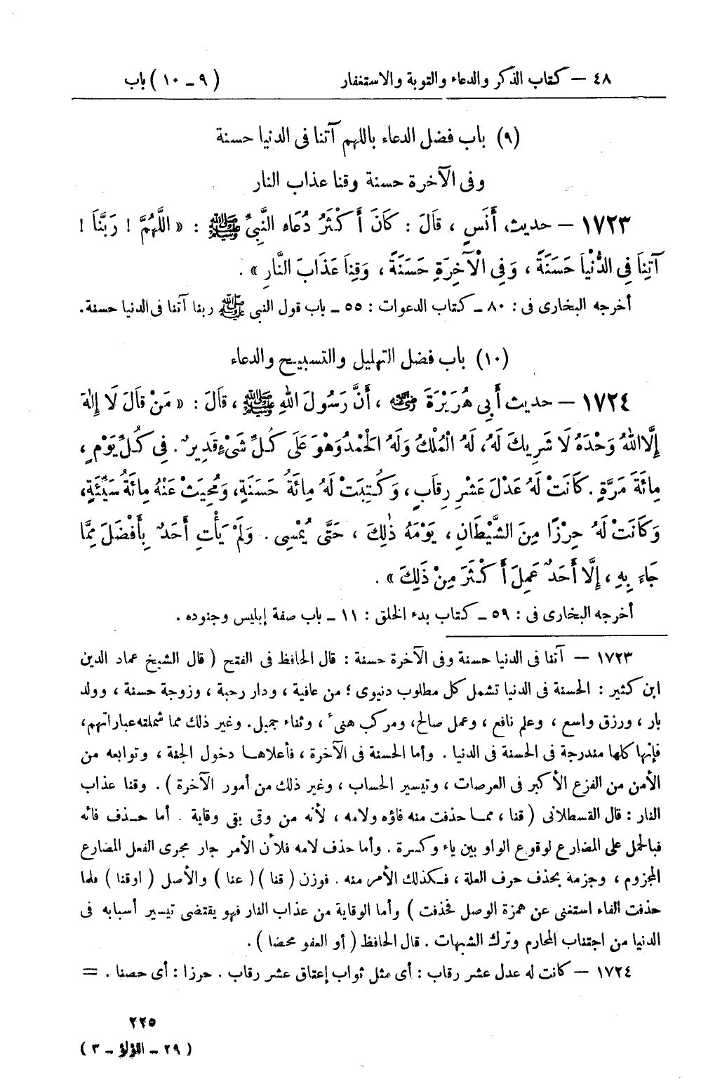 1723 - حديث أَنَسٍ، قَالَ: كَانَ أَكْثَرُ دُعَاءِ النَبِيِّ صَلَّى اللَّهُ عَلَيْهِ وَسَلَّمَ: اللهُمَّ رَبَّنَا آتِنَا فِي الدُّنْيَا حَسَنَةً، وَفِي الآخِرَةِ حَسَنَةً، وَقِنَا عَذَابَ النَّارِ