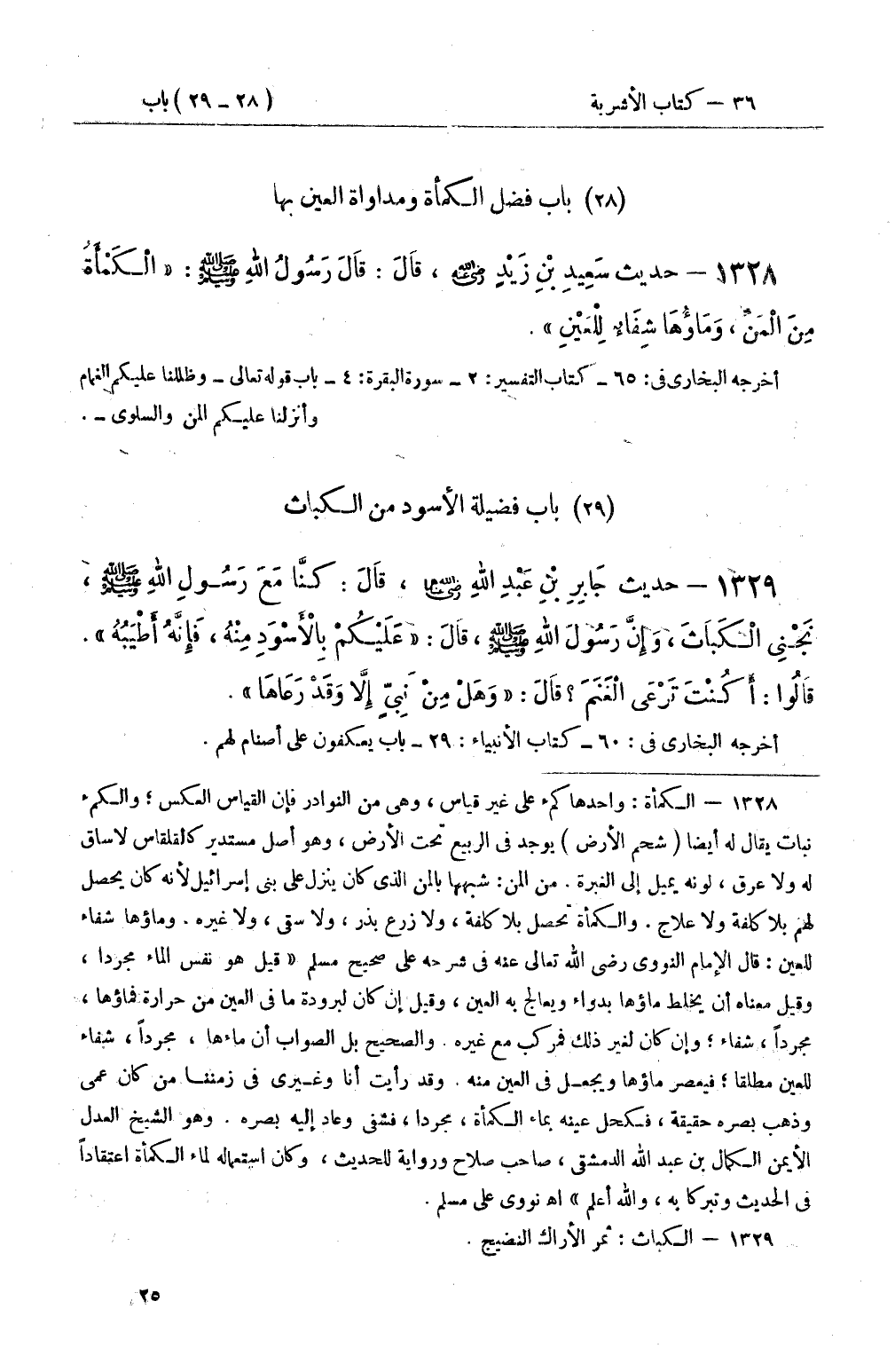 1328 - حديث سَعِيدِ بْنِ زَيْدٍ رضي الله عنه، قَالَ: قَالَ: رَسُولُ اللهِ صَلَّى اللَّهُ عَلَيْهِ وَسَلَّمَ: الْكَمْأَةُ مِنَ الْمَنِّ، وَمَاؤُهَا شِفَاءٌ لِلْعَيْنِ