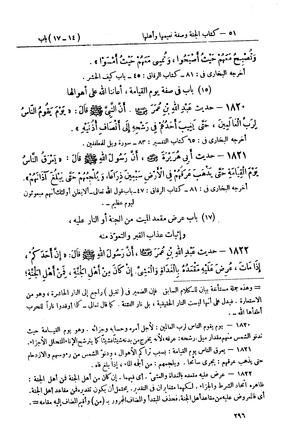 1822 - حديث عَبْدِ اللهِ بْنِ عُمَرَ، أَنَّ رَسُولَ اللهِ صَلَّى اللَّهُ عَلَيْهِ وَسَلَّمَ قَالَ: إِنَّ أَحَدَكمْ، إِذَا مَاتَ، عُرِضَ عَلَيْهِ مَقْعَدُهُ بِالْغَدَاةِ وَالْعَشِيِّ إِنْ كَانَ مِنْ أَهْلِ الْجَنَّةِ، فَمِنْ أَهْلِ الْجَنَّةِ؛ -[297]- وَإِنْ كَانَ مِنْ أَهْلِ النَّارِ؛ فَيُقَالُ هذَا مَقْعَدُكَ حَتَّى يَبْعَثَكَ اللهُ يَوْمَ الْقِيَامَةِ