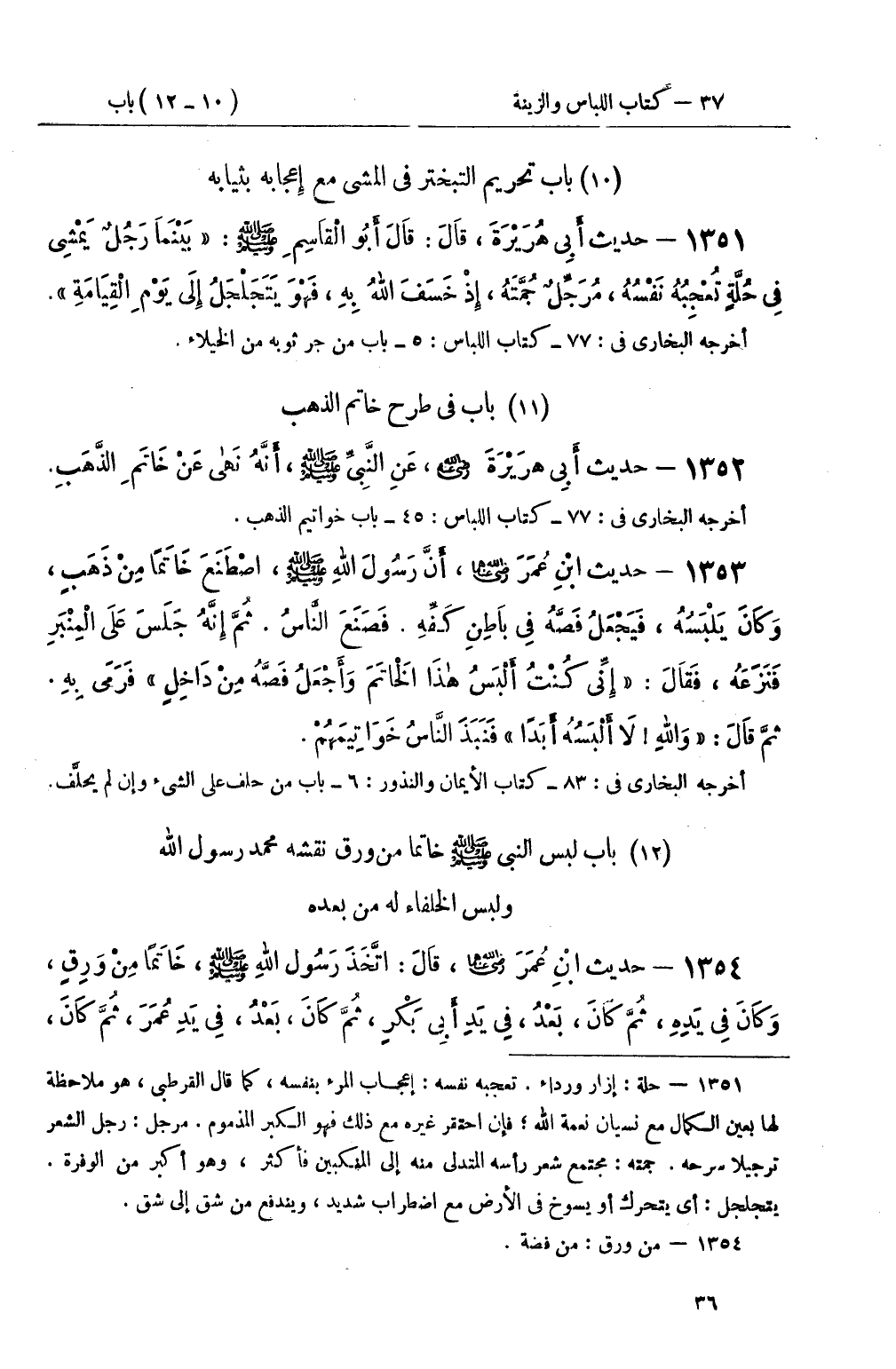 1351 - حديث أَبِي هُرَيْرَةَ، قَالَ: قَالَ أَبُو الْقَاسِمِ صَلَّى اللَّهُ عَلَيْهِ وَسَلَّمَ: بَيْنَمَا رَجُلٌ يَمْشِي فِي حُلَّةٍ تُعْجِبُهُ نَفْسُهُ، مُرَجِّلٌ جُمَّتَهُ، إِذْ خَسَفَ اللهُ بِهِ، فَهُوَ يَتَجَلْجَلُ إِلَى يَوْمِ الْقِيَامَةِ