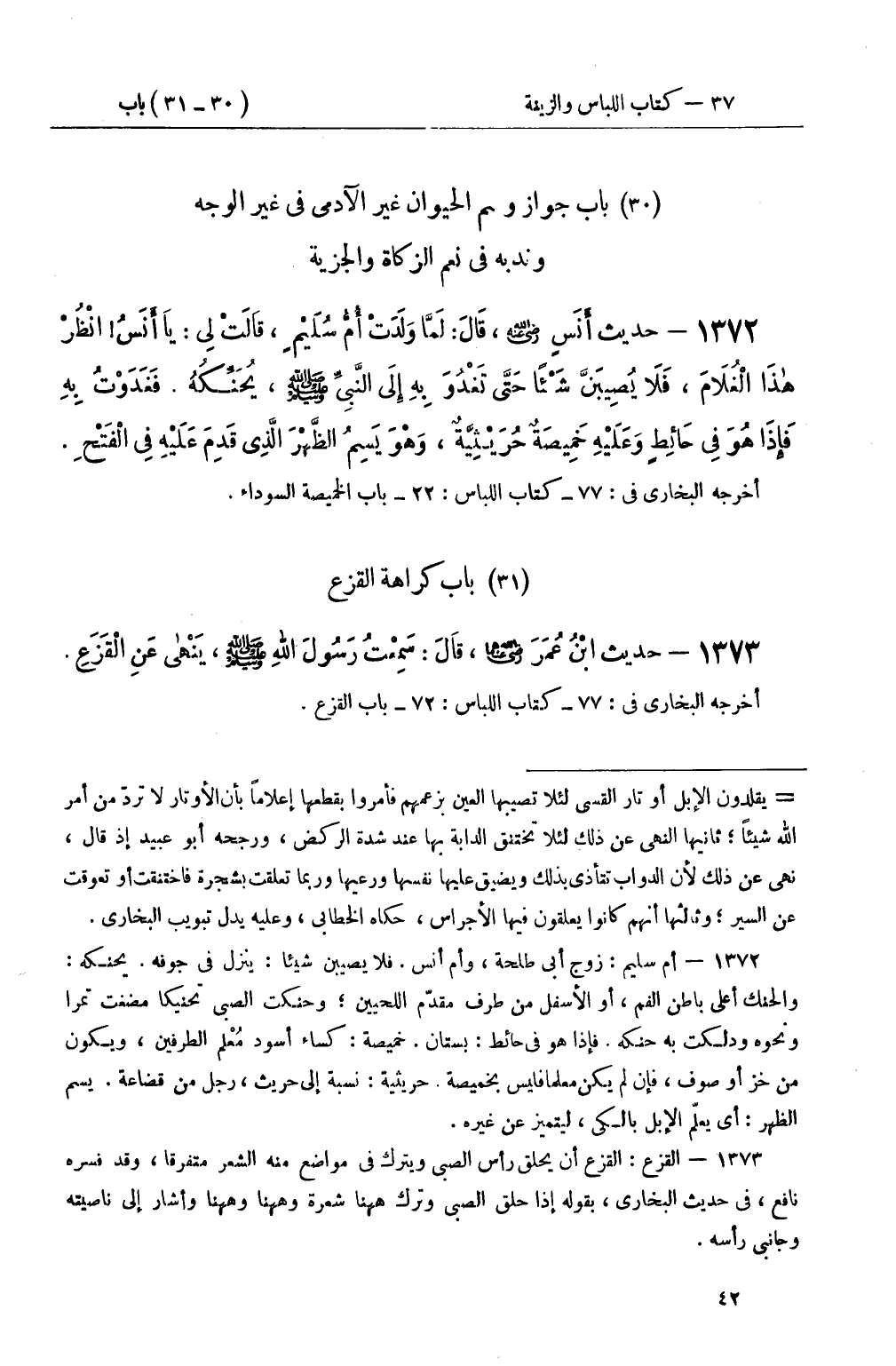 1372 - حديث أَنَسٍ رضي الله عنه، قَالَ: لَمَّا وَلَدَتْ أُمُّ سُلَيْمٍ، قَالَتْ لِي: يَا أَنَسُ انْظُرْ هذَا الْغُلاَمَ، فَلاَ يُصِيبَنَّ شَيْئًا حَتَّى تَغْدُوَ بِهِ إِلَى النَّبِيِّ صَلَّى اللَّهُ عَلَيْهِ وَسَلَّمَ، يُحَنِّكُهُ فَغَدَوْتُ بِهِ فَإِذَا هُوَ فِي حَائِطٍ وَعَلَيْهِ خَمِيصَةٌ حُرَيْثِيَّةٌ، وَهُوَ يَسِمُ الظَّهْرَ الَّذِي قَدِمَ عَلَيْهِ فِي الْفَتْحِ