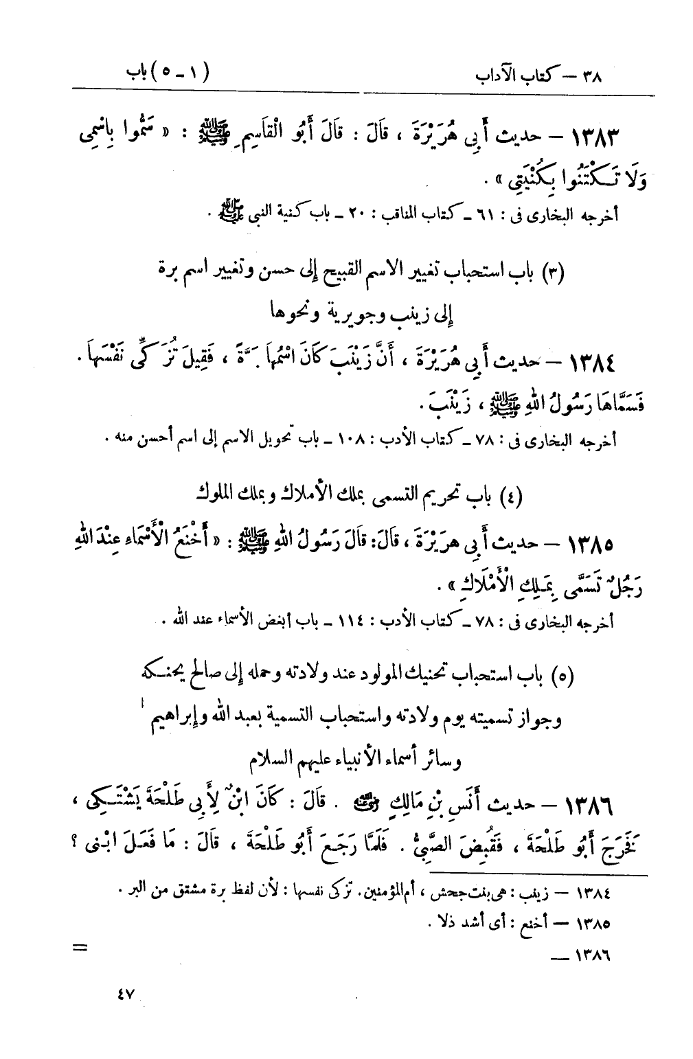 1384 - حديث أَبِي هُرَيْرَةَ، أَنَّ زَيْنَبَ كَانَ اسْمُهَا بَرَّةً، فَقِيلَ تُزَكِّي نَفْسَهَا فَسَمَّاهَا رَسُولُ اللهِ صَلَّى اللَّهُ عَلَيْهِ وَسَلَّمَ، زَيْنَبَ