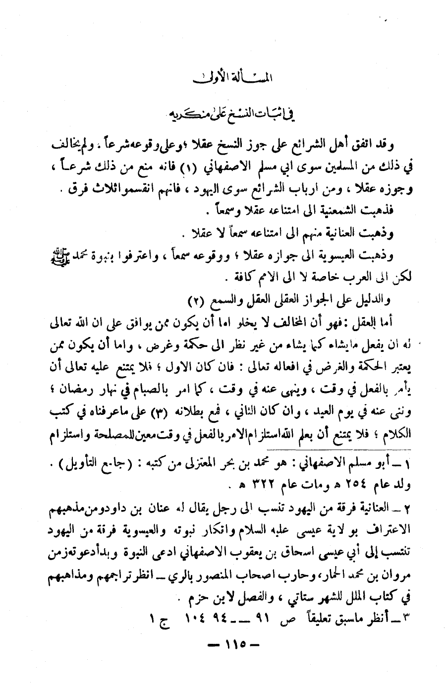 الْمَسْأَلَةُ الْأُولَى فِي إِثْبَاتِ النَّسْخِ عَلَى مُنْكِرِيهِ