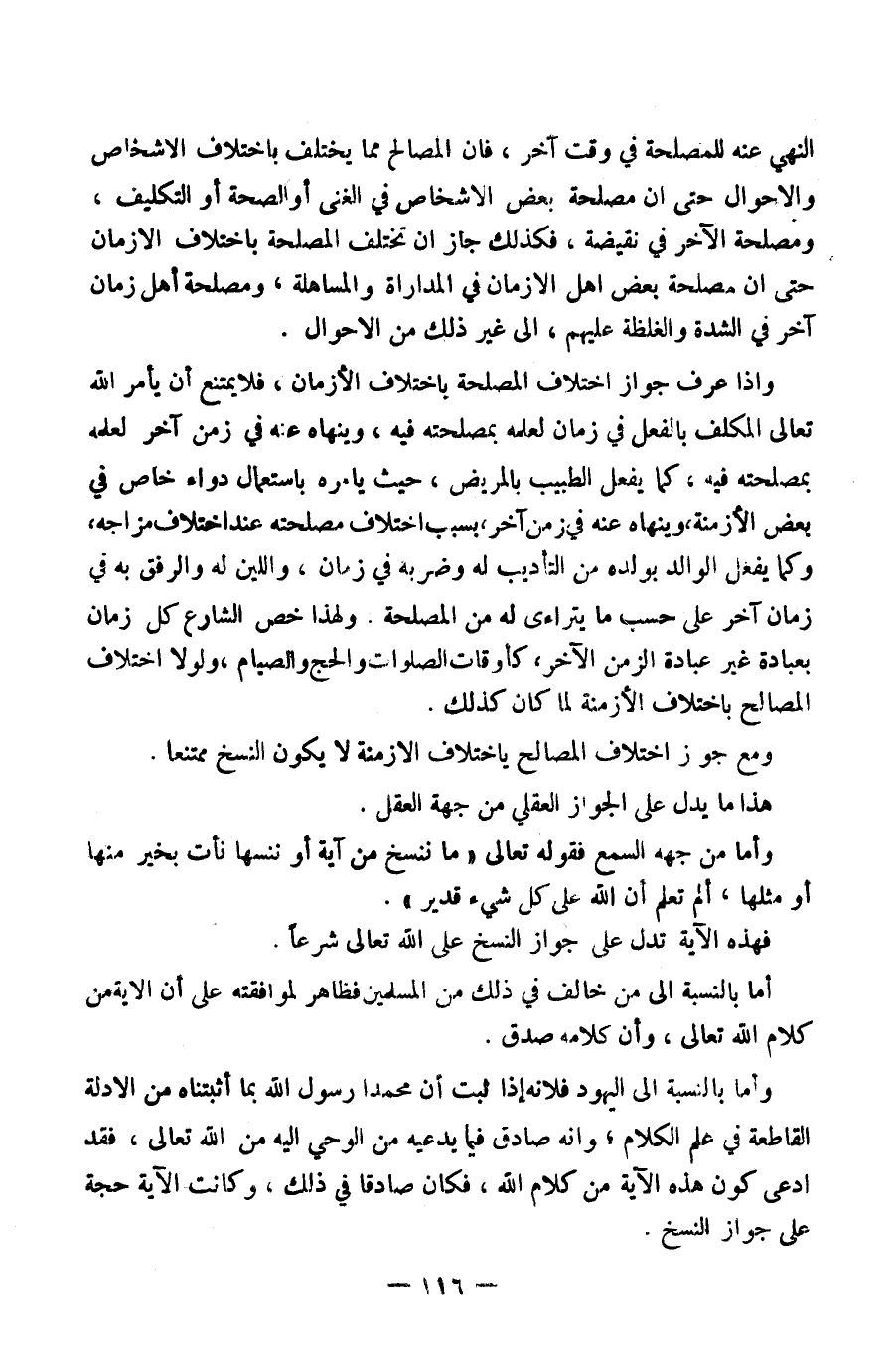 وَمَعَ جَوَازِ اخْتِلَافِ الْمَصَالِحِ بِاخْتِلَافِ الْأَزْمِنَةِ لَا يَكُونُ النَّسْخُ مُمْتَنِعًا.