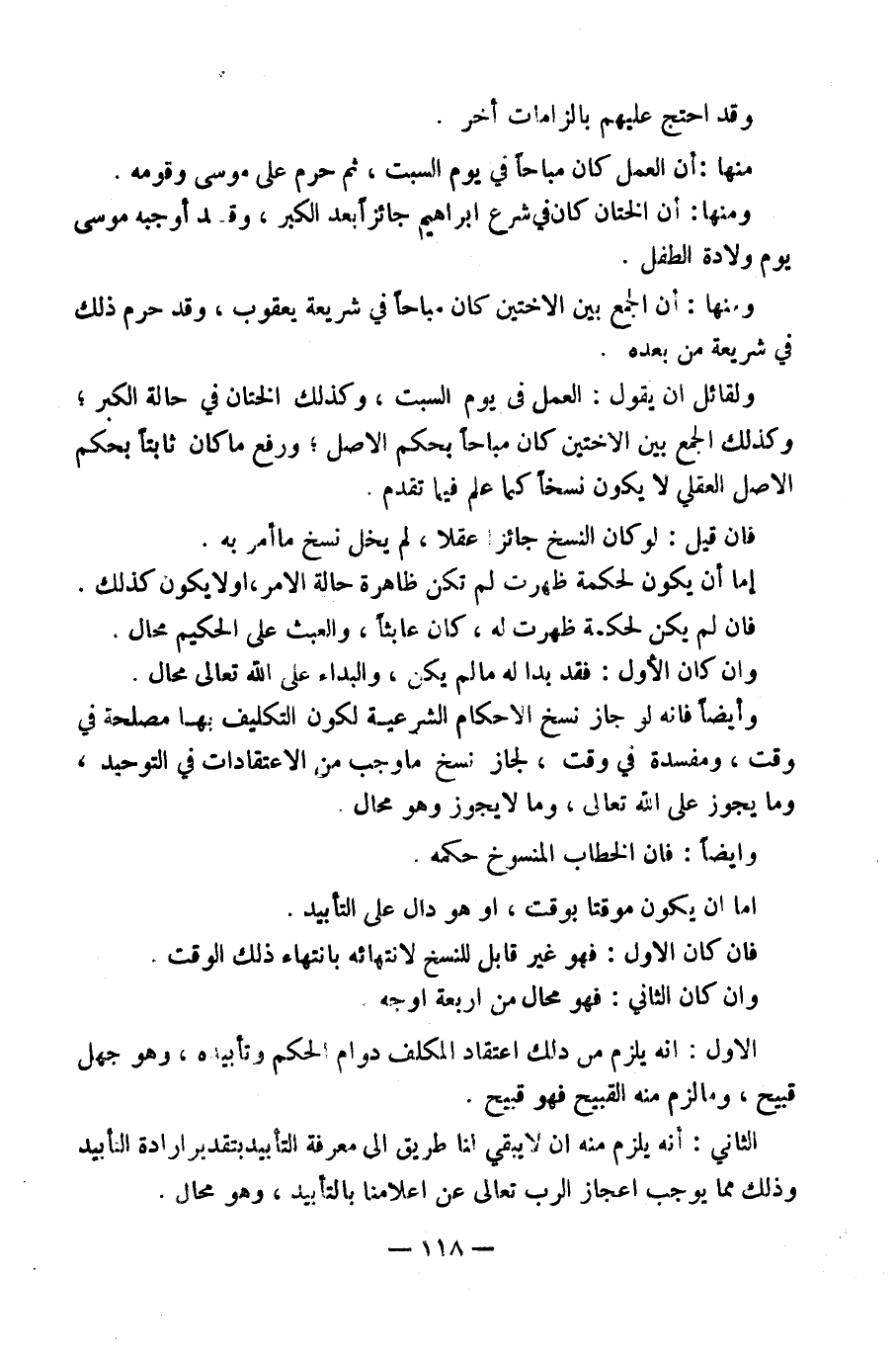 وَأَيْضًا، فَإِنَّهُ لَوْ جَازَ نَسْخُ الْأَحْكَامِ الشَّرْعِيَّةِ لِكَوْنِ التَّكْلِيفِ بِهَا مَصْلَحَةً فِي وَقْتٍ وَمَفْسَدَةً فِي وَقْتٍ لَجَازَ نَسْخُ مَا وَجَبَ مِنَ الِاعْتِقَادَاتِ فِي التَّوْحِيدِ وَمَا يَجُوزُ عَلَى اللَّهِ تَعَالَى وَمَا لَا يَجُوزُ وَهُوَ مُحَالٌ.