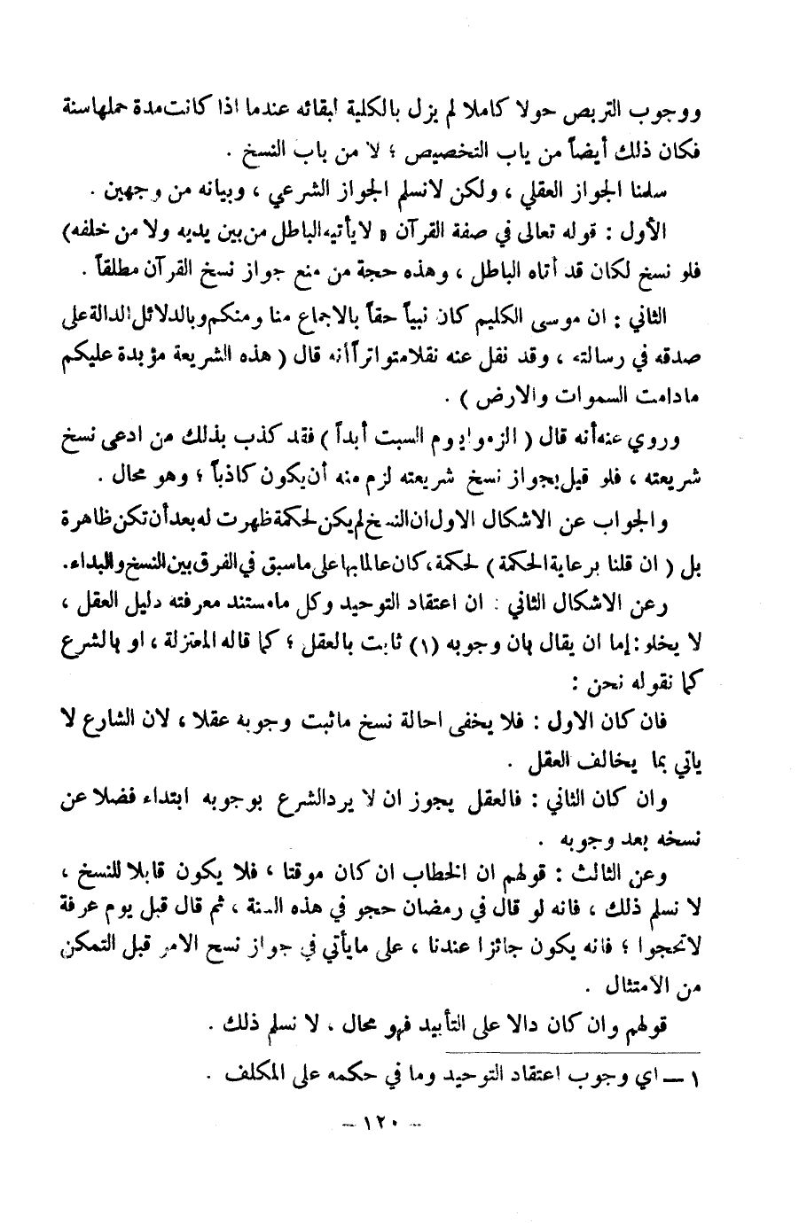 الثَّانِي: أَنَّ مُوسَى الْكَلِيمَ كَانَ نَبِيًّا حَقًّا بِالْإِجْمَاعِ مِنَّا وَمِنْكُمْ وَبِالدَّلَائِلِ الدَّالَّةِ عَلَى صِدْقِهِ فِي رِسَالَتِهِ، وَقَدْ نُقِلَ عَنْهُ نَقْلًا مُتَوَاتِرًا أَنَّهُ قَالَ: (هَذِهِ الشَّرِيعَةُ مُؤَبَّدَةٌ عَلَيْكُمْ مَا دَامَتِ السَّمَاوَاتُ وَالْأَرْضُ) .