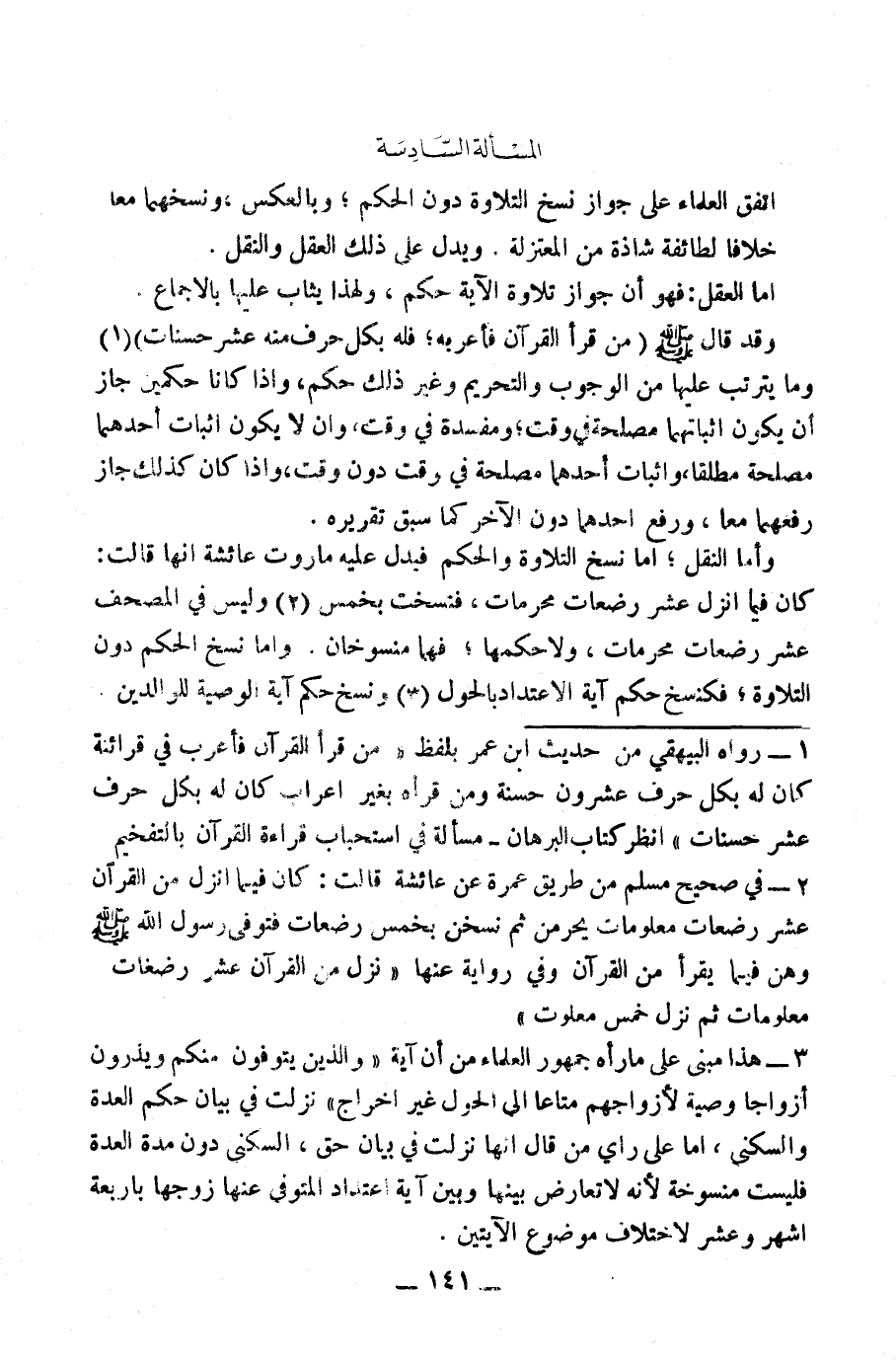 [الْمَسْأَلَةُ السادسة نَسْخِ التِّلَاوَةِ دُونَ الْحُكْمِ وَبِالْعَكْسِ وَنَسْخِهِمَا مَعًا]