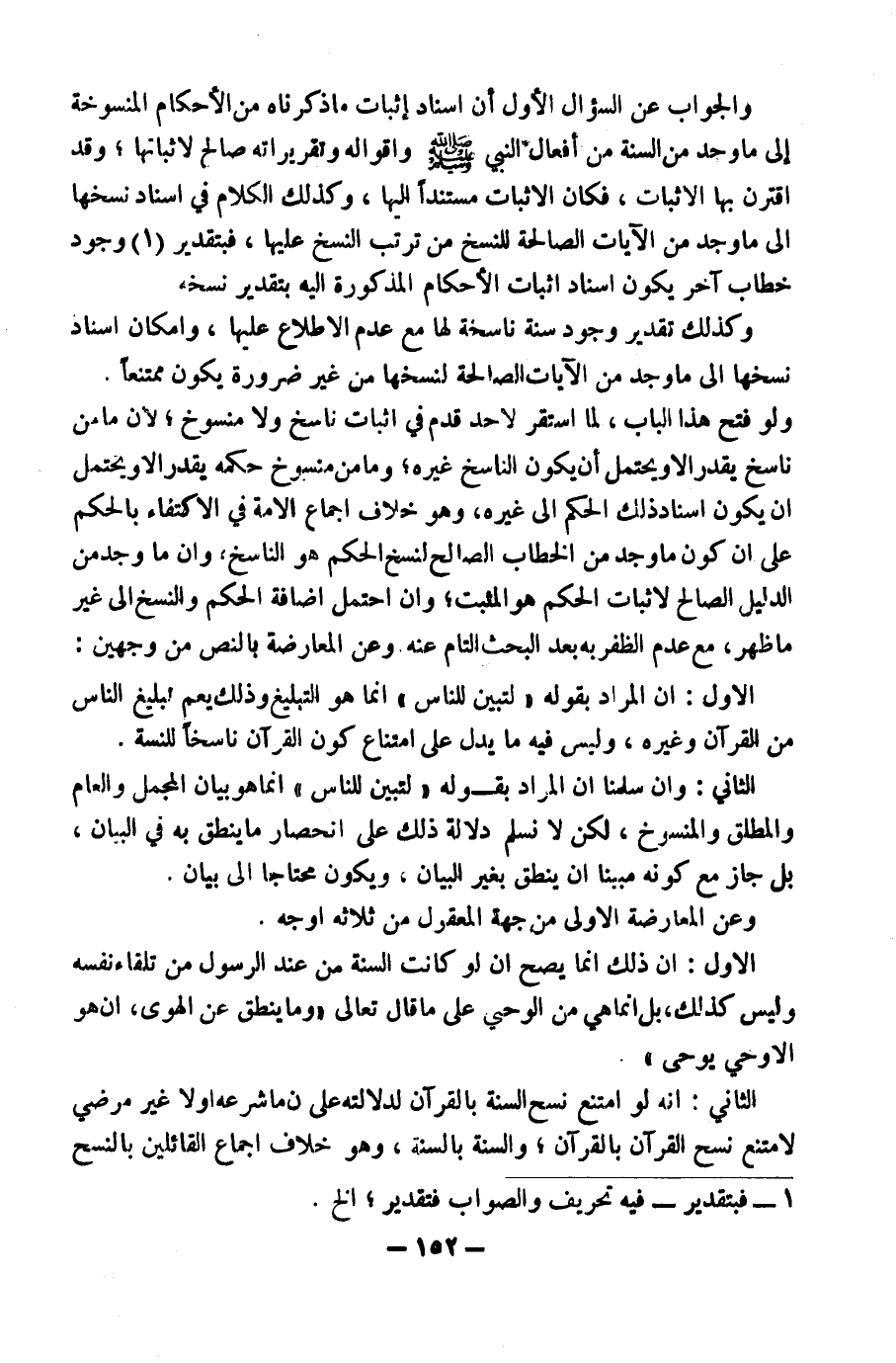 وَالْجَوَابُ عَنِ السُّؤَالِ الْأَوَّلِ: أَنَّ إِسْنَادَ إِثْبَاتِ مَا ذَكَرْنَاهُ مِنَ الْأَحْكَامِ الْمَنْسُوخَةِ إِلَى مَا وُجِدَ مِنَ السُّنَّةِ مِنْ أَفْعَالِ النَّبِيِّ صَلَّى اللَّهُ عَلَيْهِ وَسَلَّمَ وَأَقْوَالِهِ وَتَقْرِيرَاتِهِ صَالِحٌ لِإِثْبَاتِهَا، وَقَدِ اقْتَرَنَ بِهَا الْإِثْبَاتُ فَكَانَ الْإِثْبَاتُ مُسْتَنِدًا إِلَيْهَا، وَكَذَلِكَ الْكَلَامُ فِي إِسْنَادِ نَسْخِهَا إِلَى مَا وُجِدَ مِنَ الْآيَاتِ الصَّالِحَةِ لِلنَّسْخِ مِنْ تَرَتُّبِ النَّسْخِ عَلَيْهَا، فَبِتَقْدِيرِ (١) وُجُودِ خِطَابٍ آخَرَ يَكُونُ إِسْنَادُ الْأَحْكَامِ الْمَذْكُورَةِ إِلَيْهِ بِتَقْدِيرِ نَسْخِهِ.